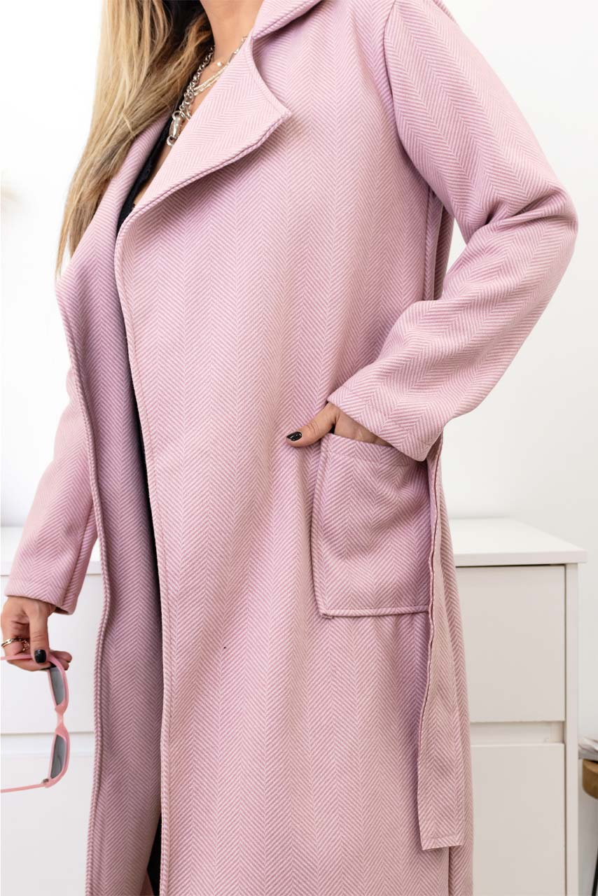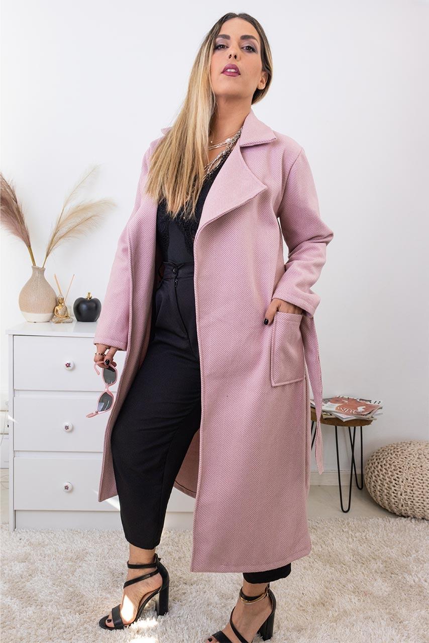 70s inspired casual chic longline παλτό σε ροζ απόχρωση με μεγάλο γιακά και μεγάλες τσέπες.