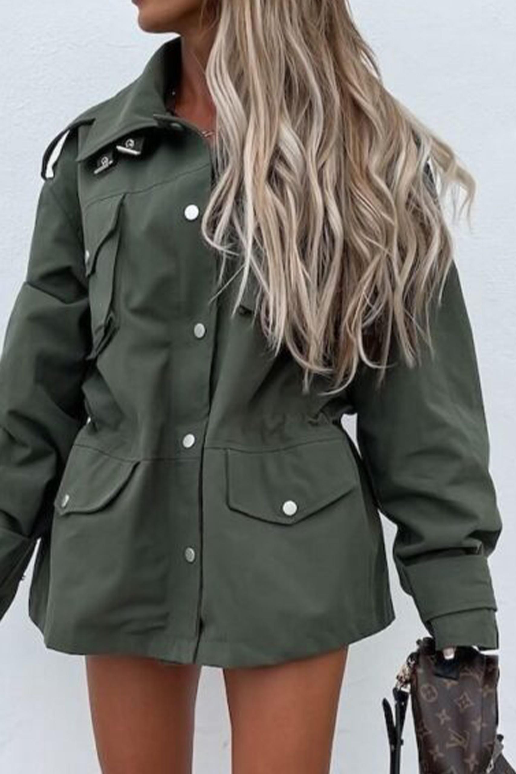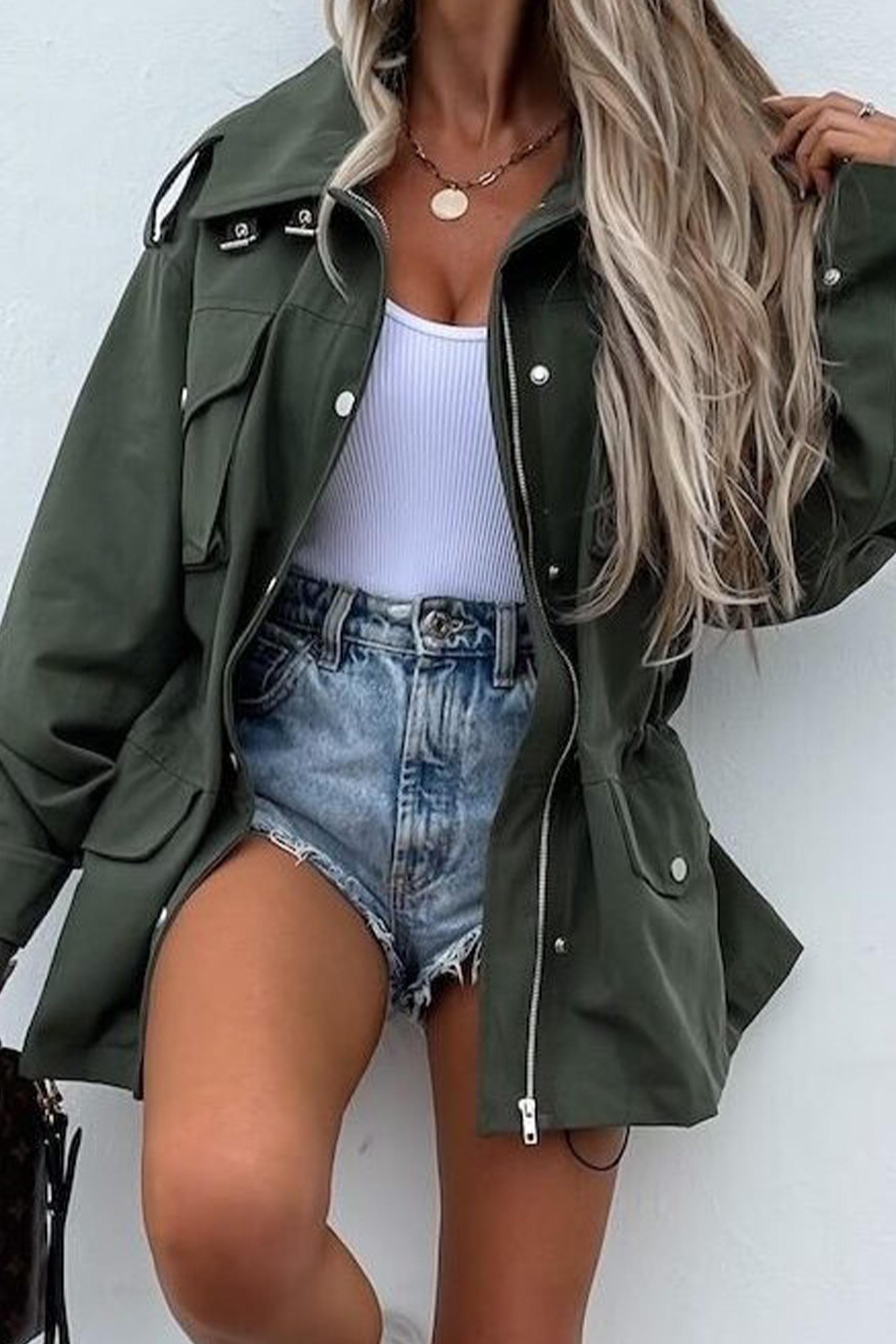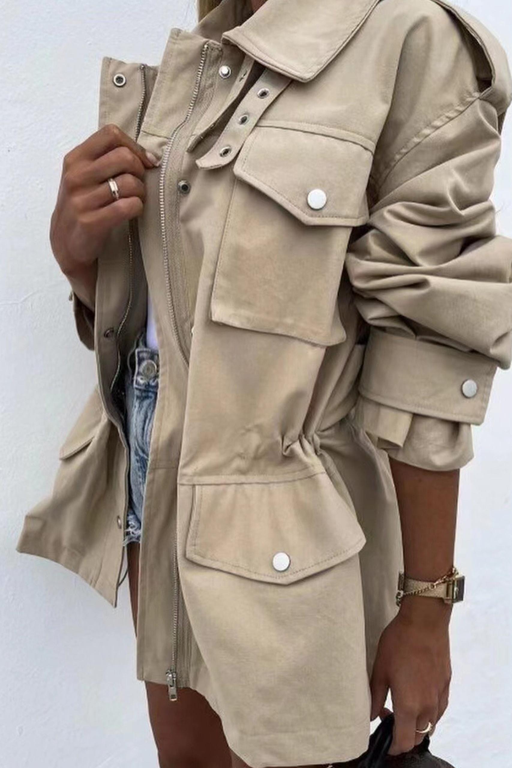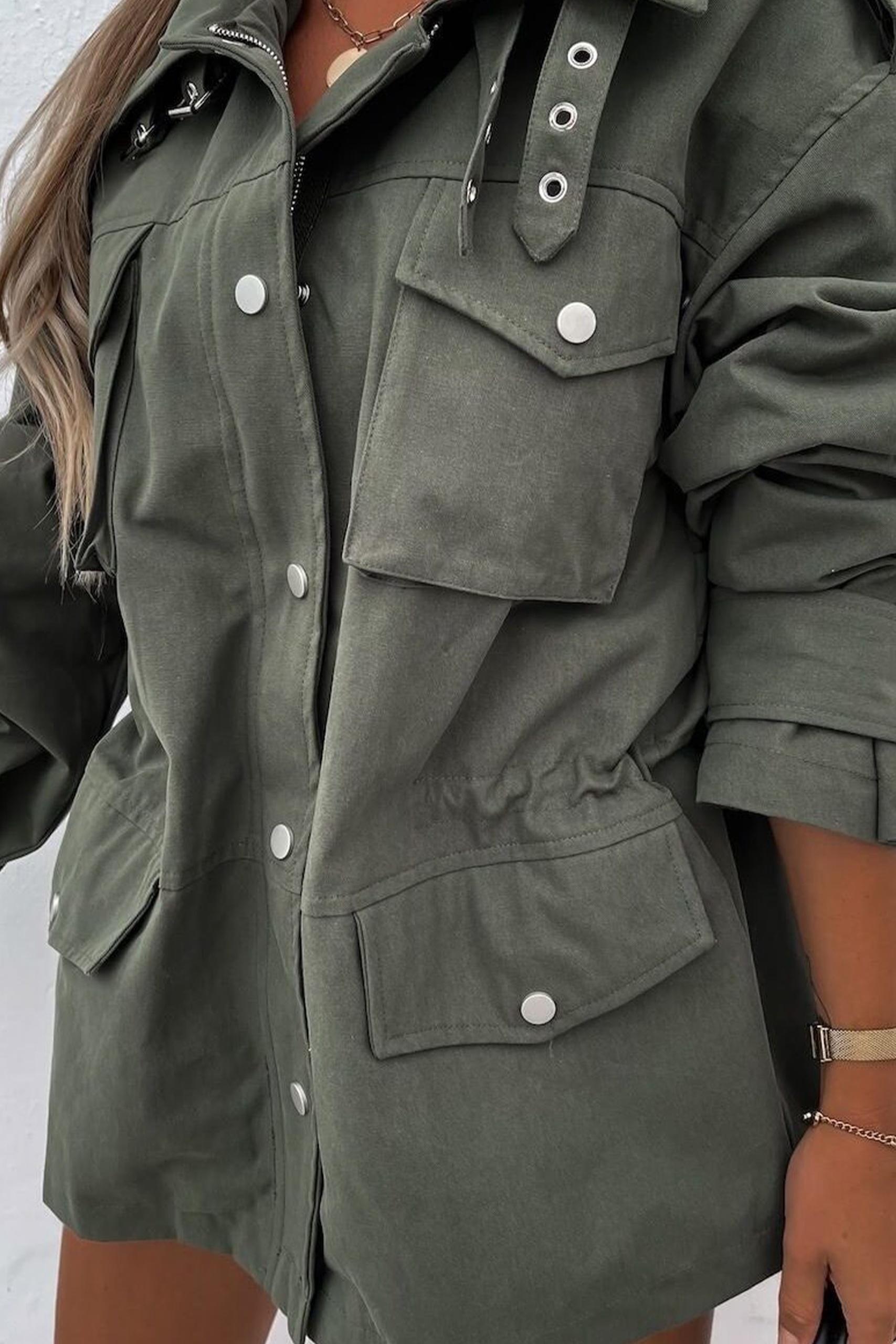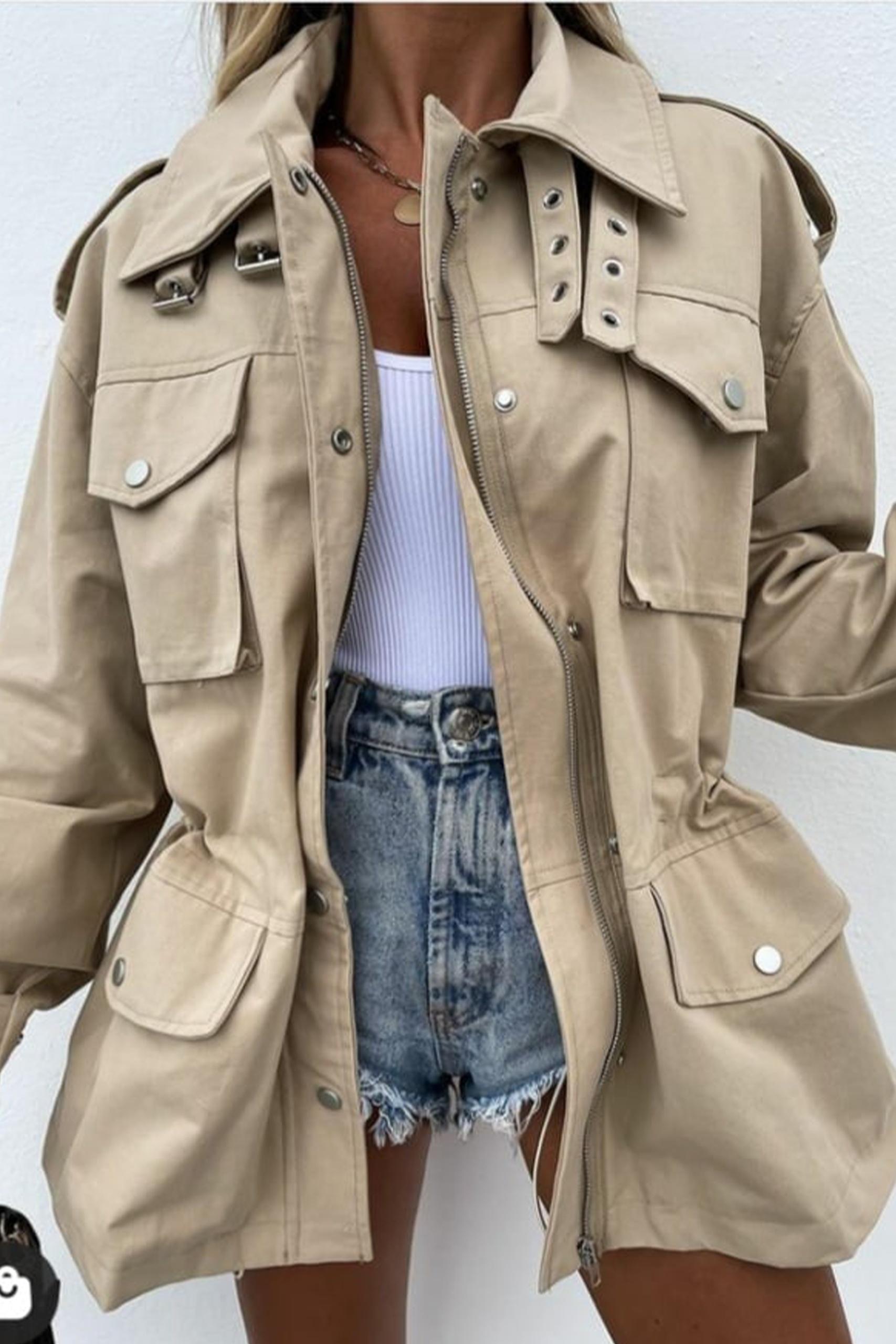 Military style jacket μεσάτο μακρυμάνικο μπουφάν σε neutral αποχρώσεις με μεγάλες τσέπες και κουμπιά.
