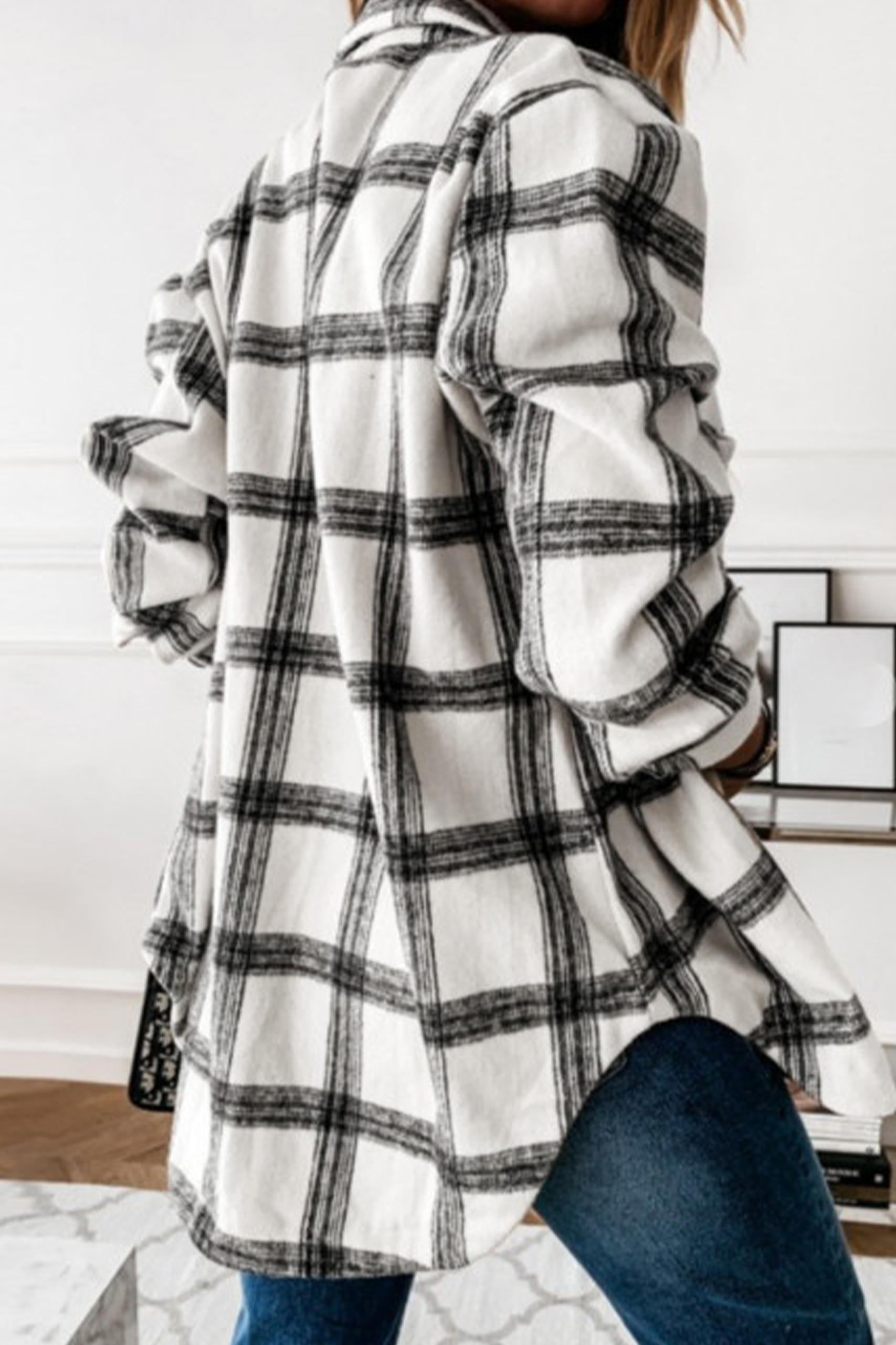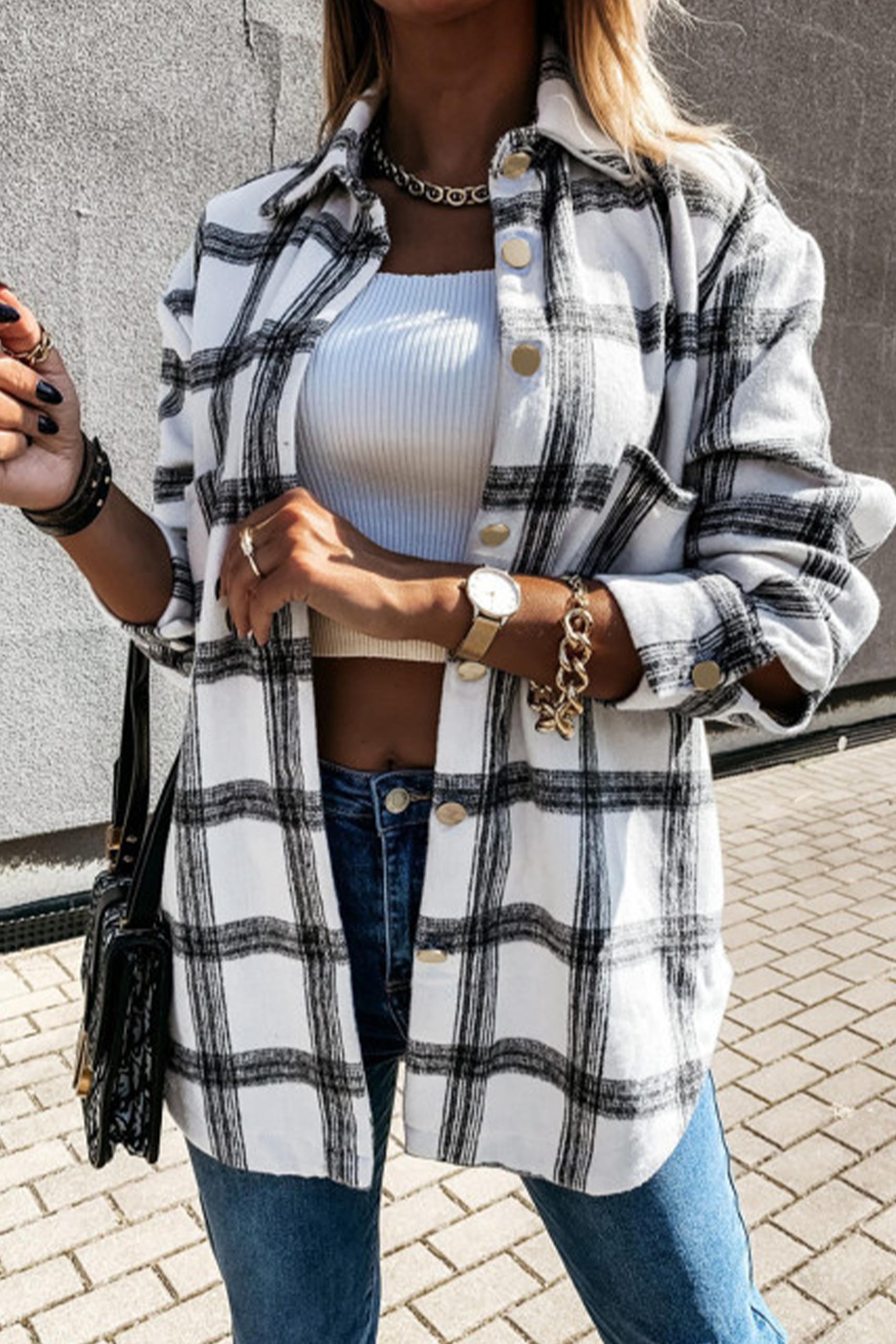 Lumberjack καρώ πουκάμισο πανωφόρι σε λευκή απόχρωση με μαύρα καρώ και χρυσά ματ κουμπιά.