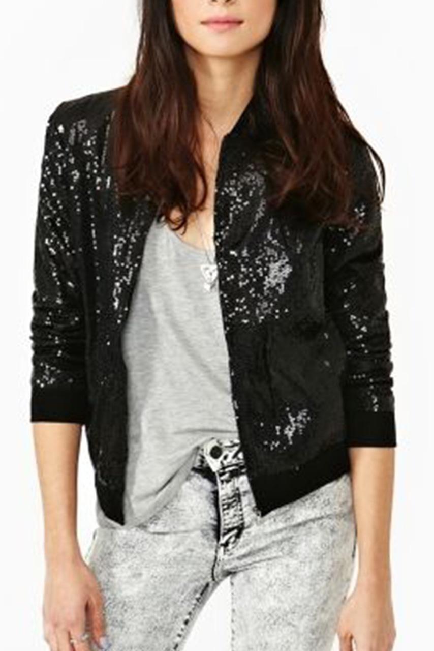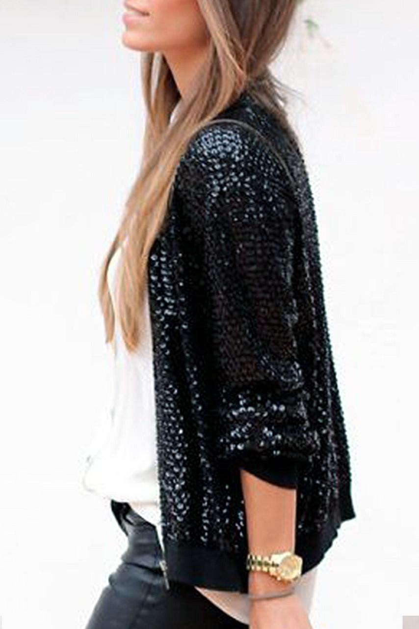 Rock glam jacket με all over prints παγιέτας σε μαύρη απόχρωση.