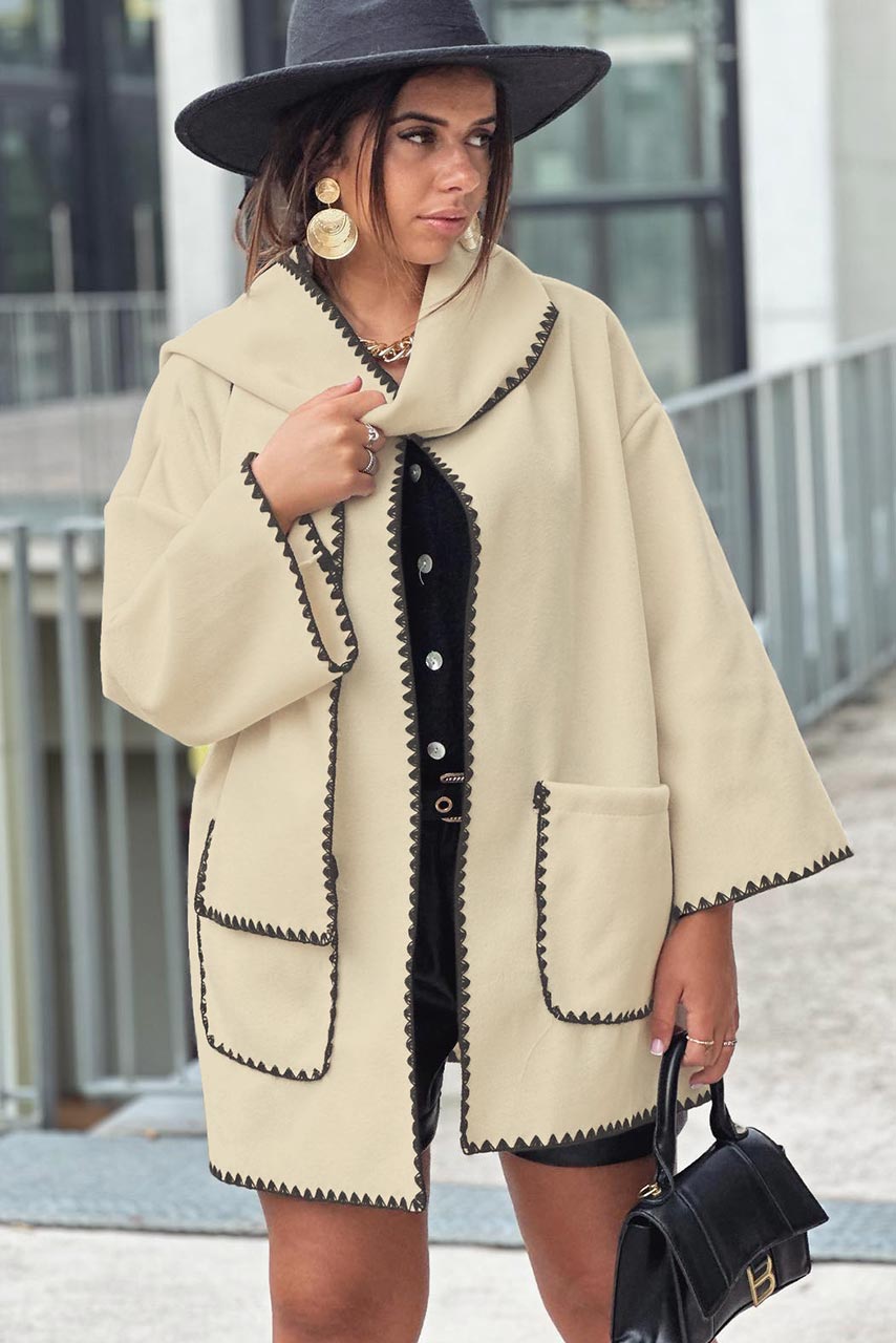 Παλτό τσόχα κοντό με ραφές σε εκρού