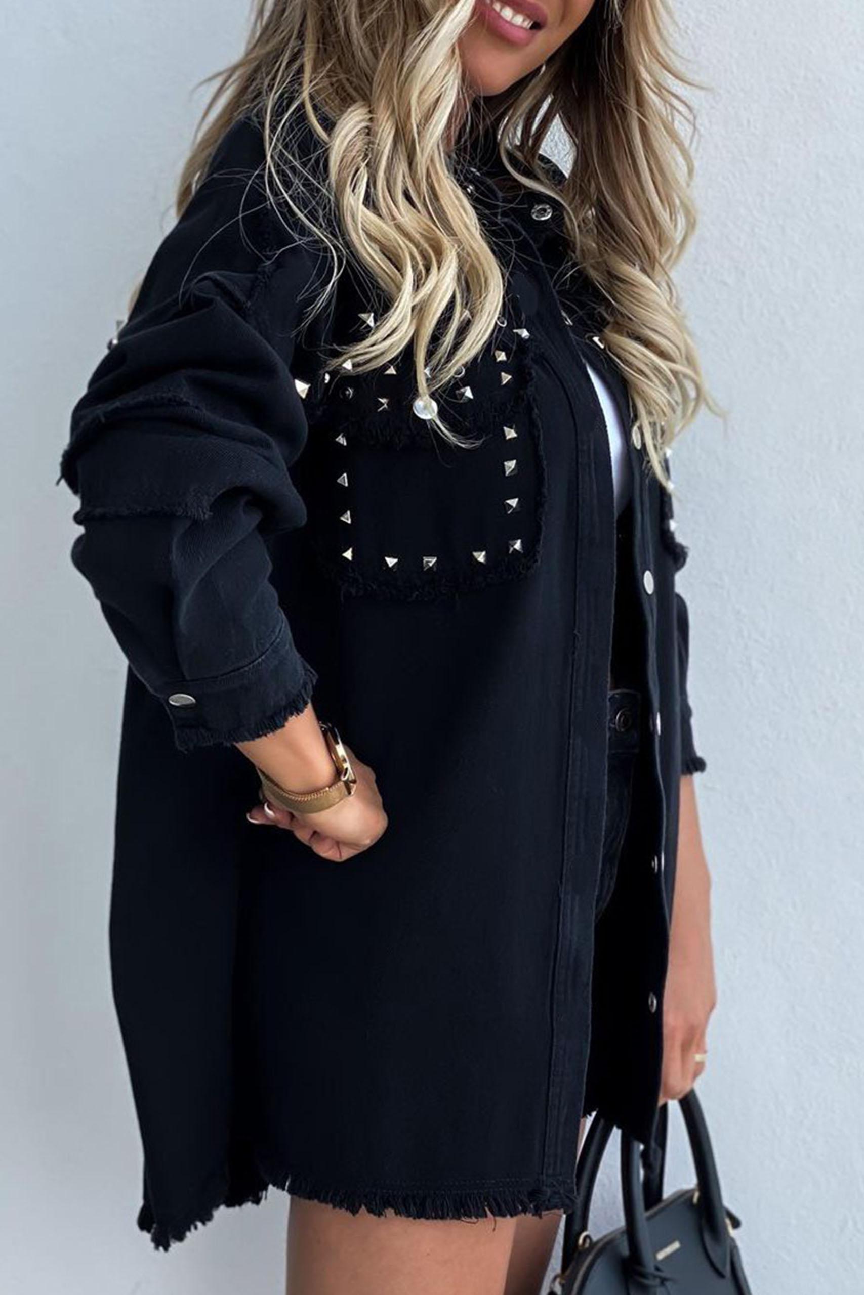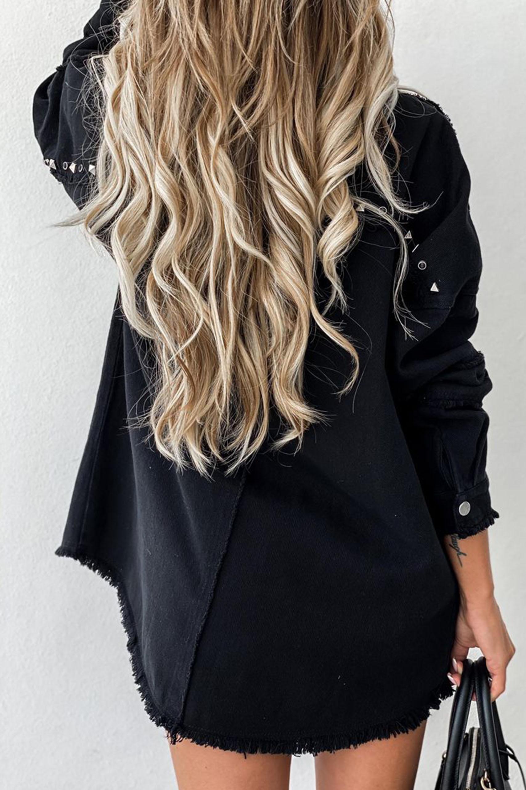 Oversized τζιν πανωφόρι torn style σε μαύρο χρώμα. Με ξέφτια στο τελείωμα και διακοσμητικά τρουκς.
