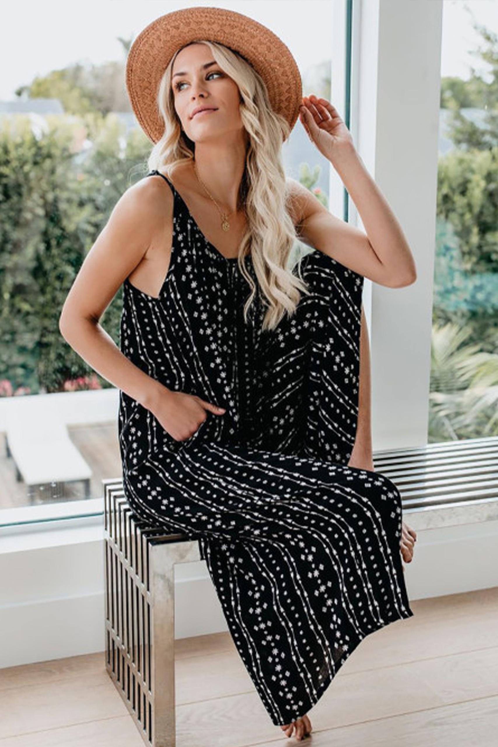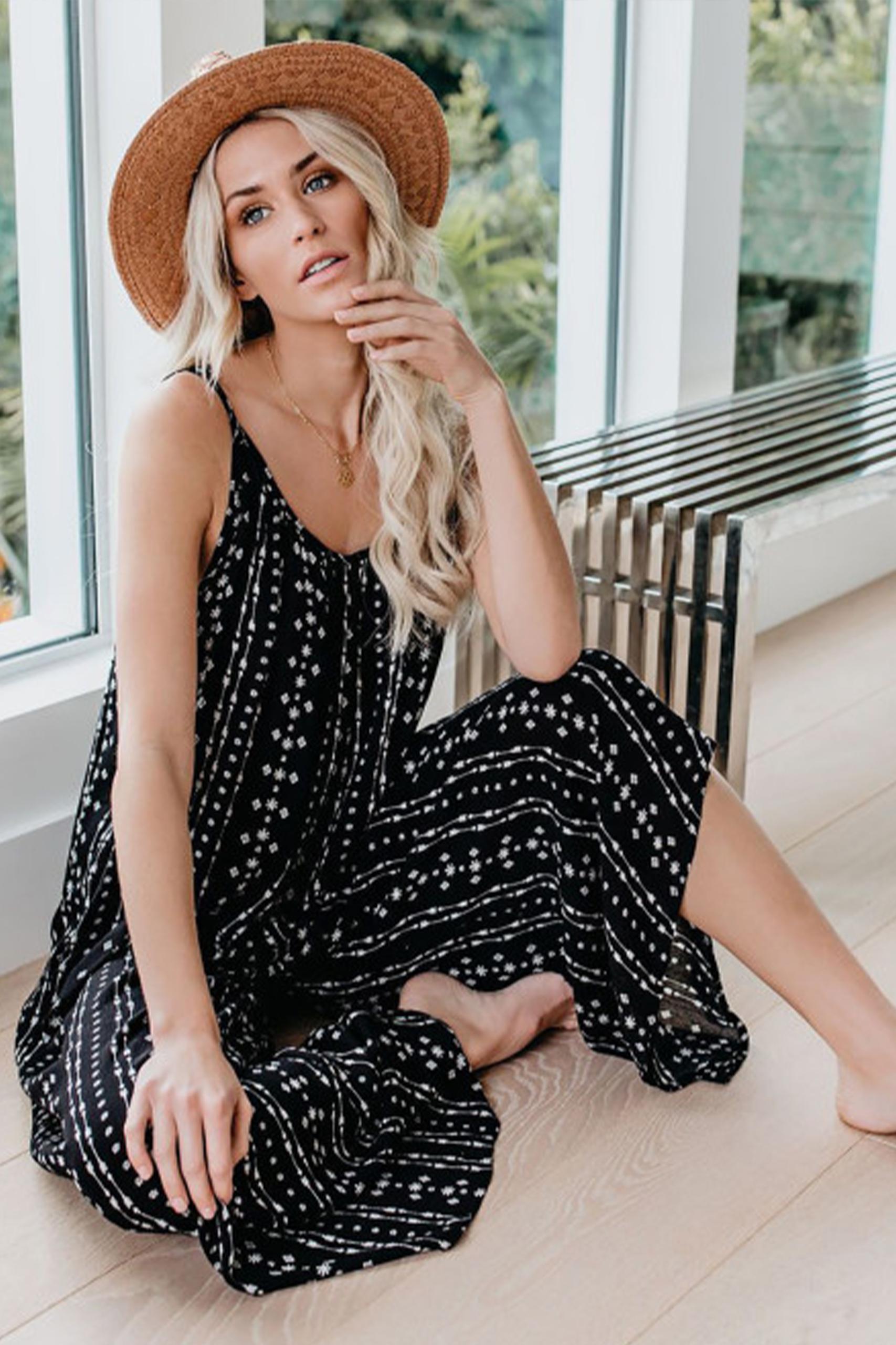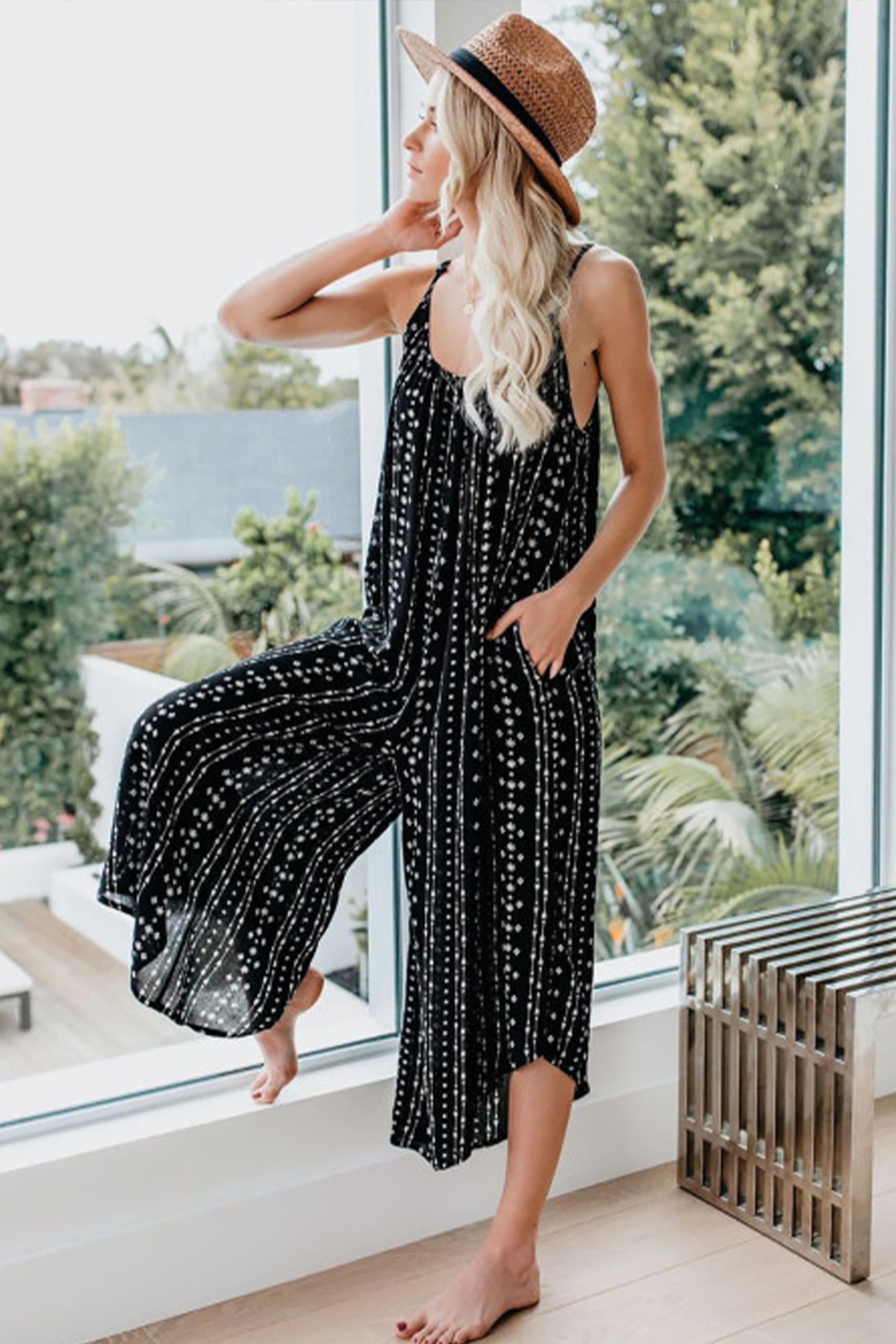 Ασπρόμαυρο jumpsuit με λεπτές τιράντες.