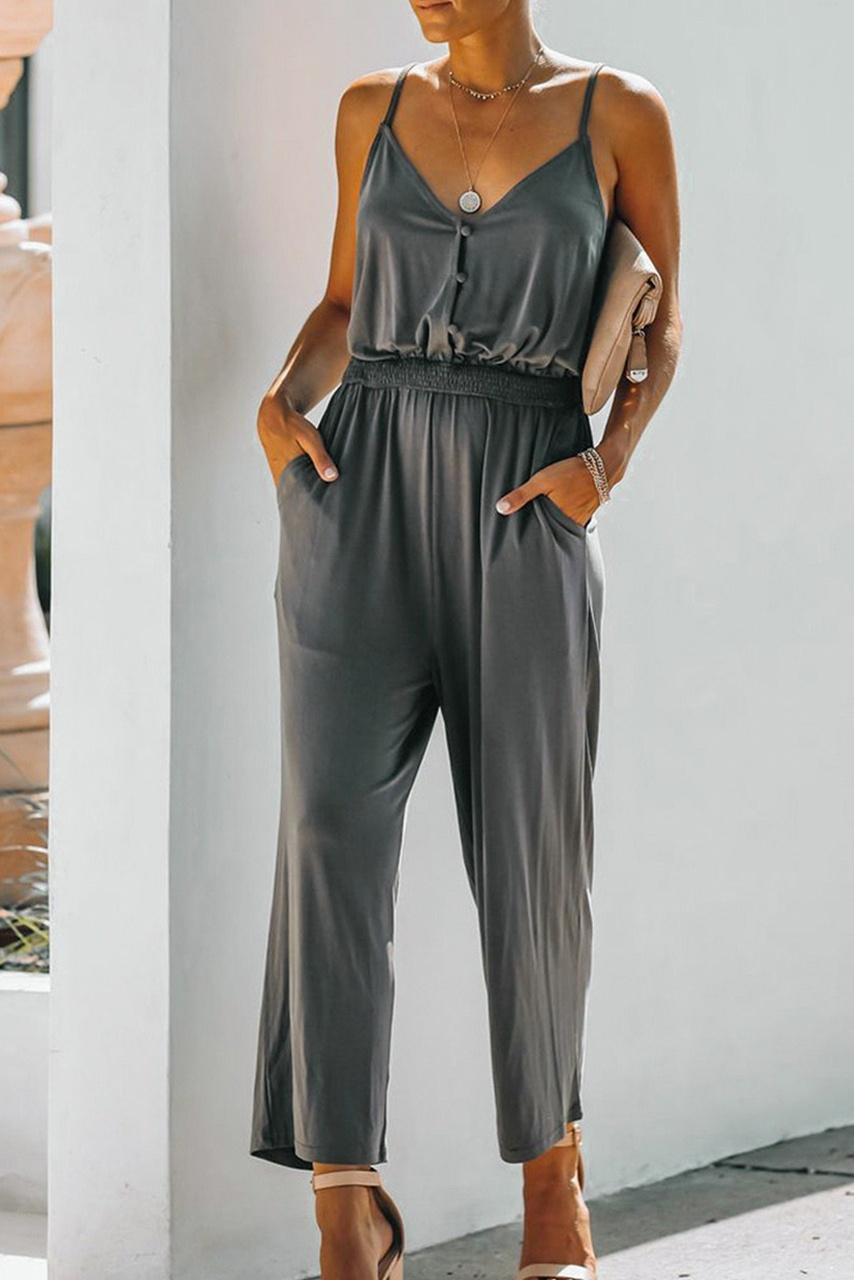 Casual loose overall ολόσωμη φόρμα σε φαρδυά γραμμή και γκρι απόχρωση για όλες τις ώρες της ημέρας.