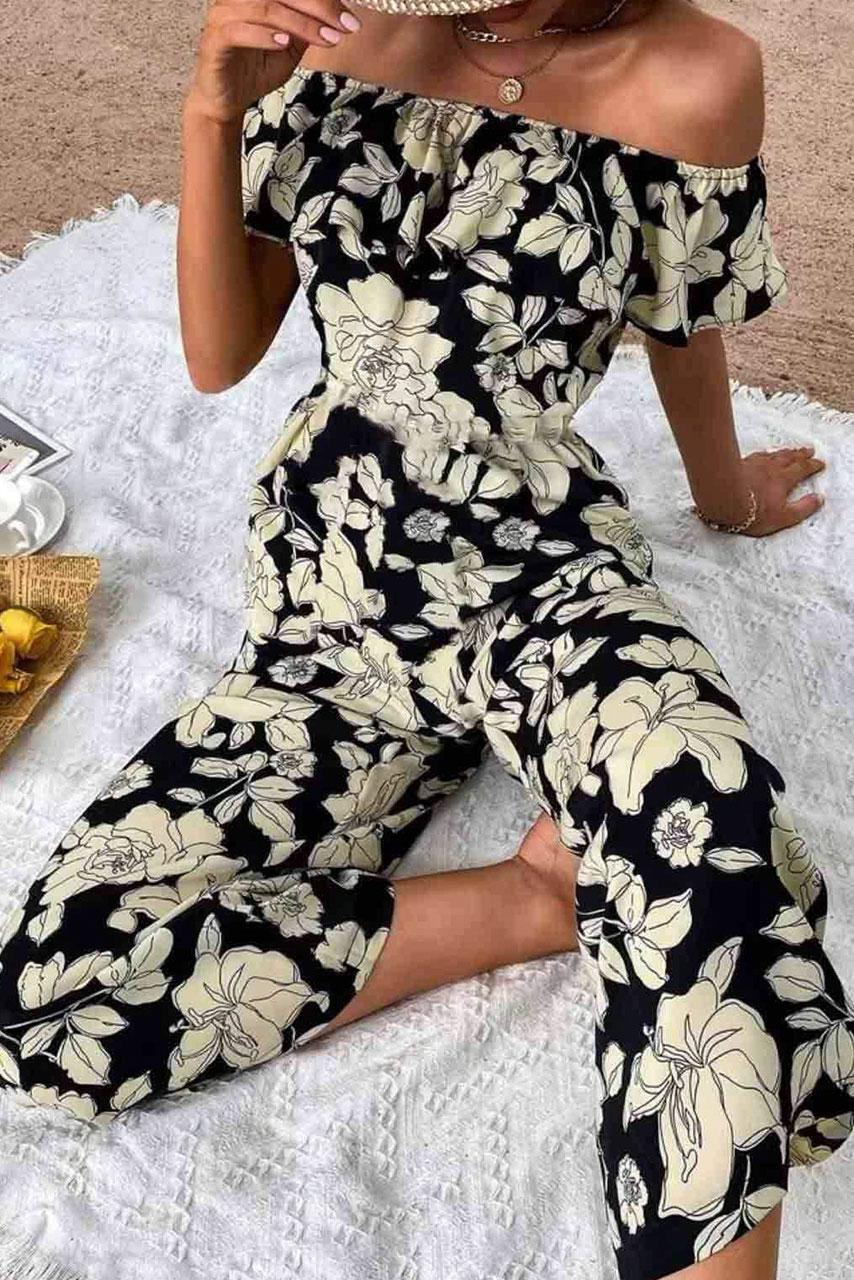 Ασπρόμαυρο floral jumpsuit