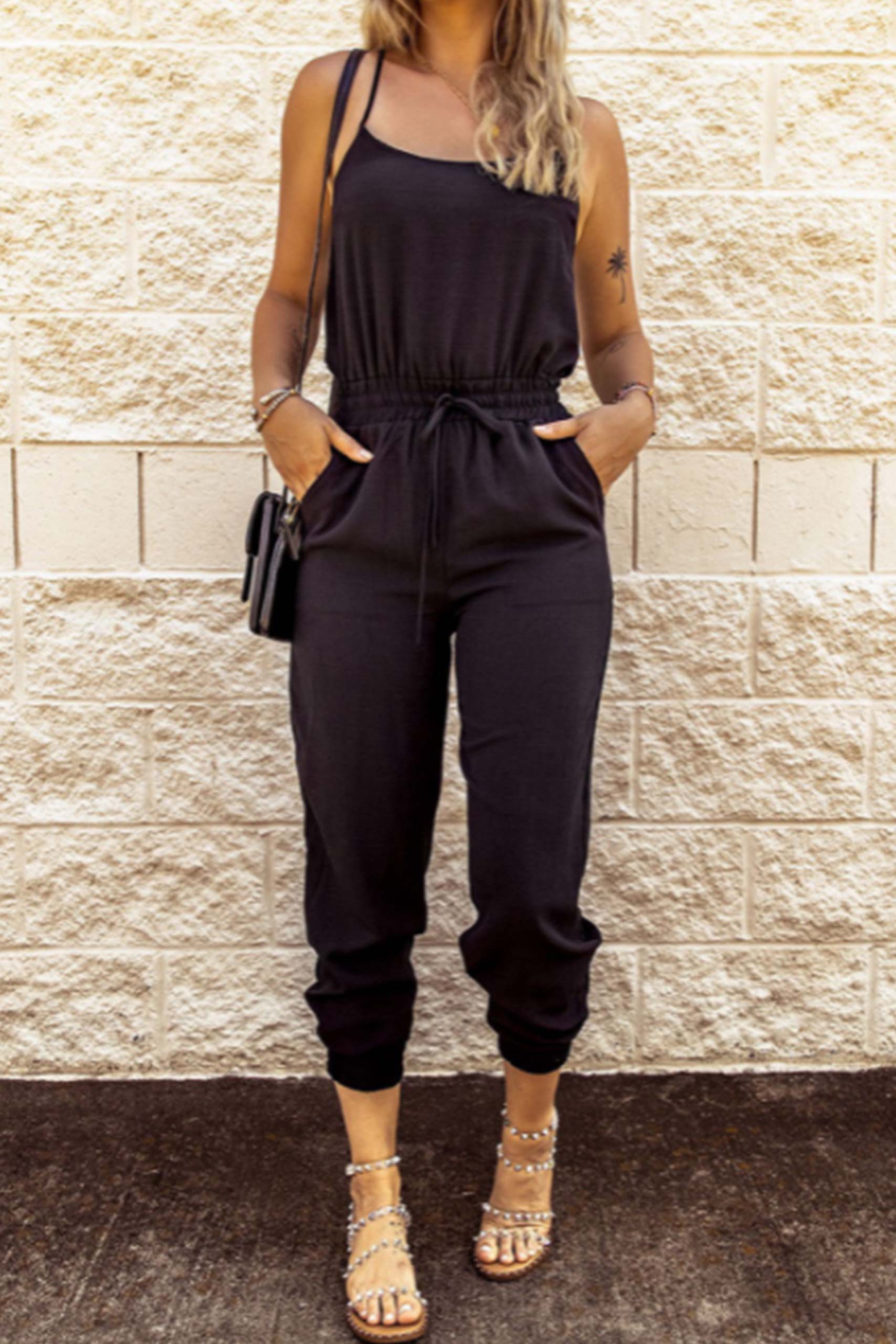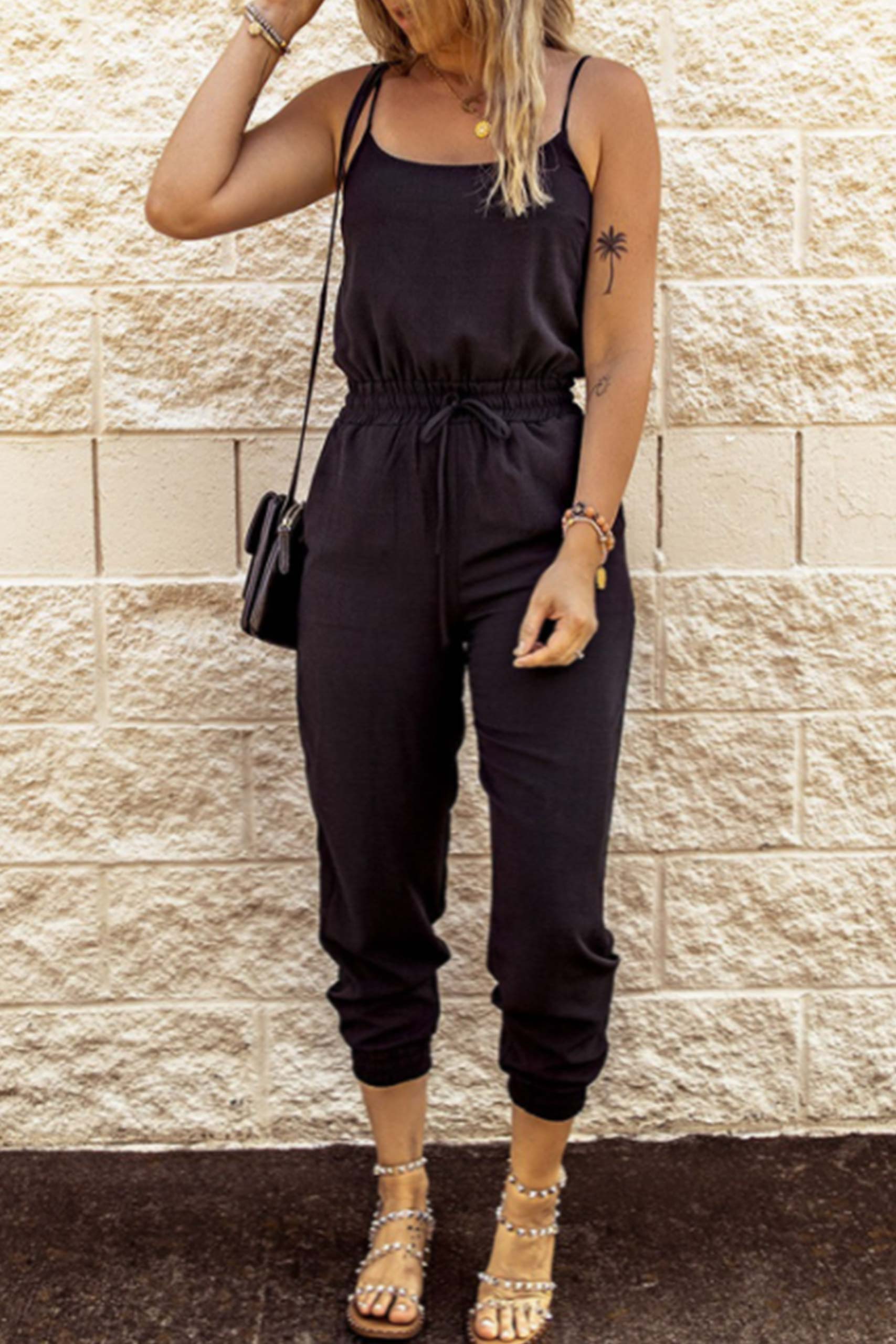 Casual sports ολόσωμη μονόχρωμη φόρμα με πολύ λεπτές τιράντες και λάστιχο στη μέση και στο τελείωμα.