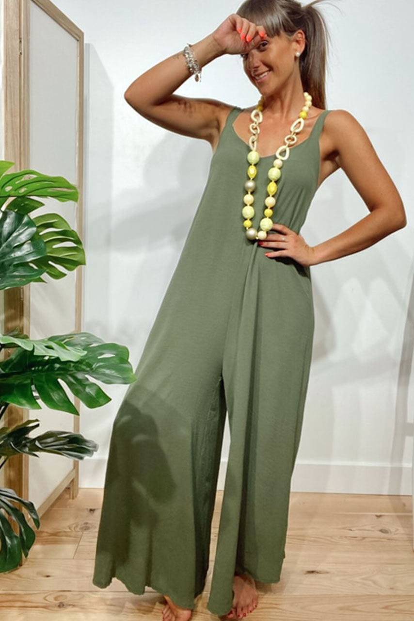 Ανάλαφρη ολόσωμη φόρμα αμάνικη σε χακί Ανάλαφρη ολόσωμη φόρμα αμάνικη σε χακί