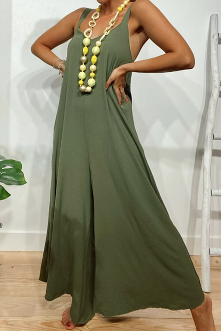 Ανάλαφρη ολόσωμη φόρμα αμάνικη σε χακί