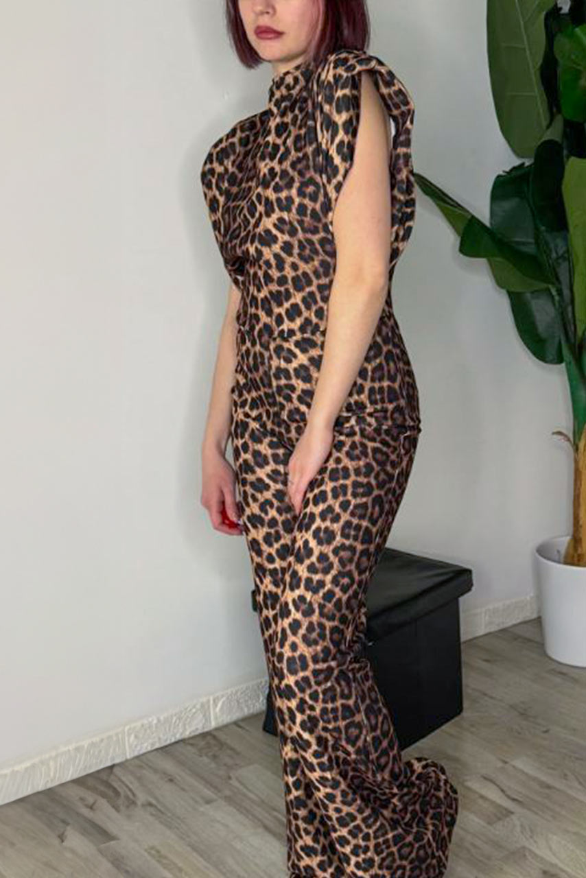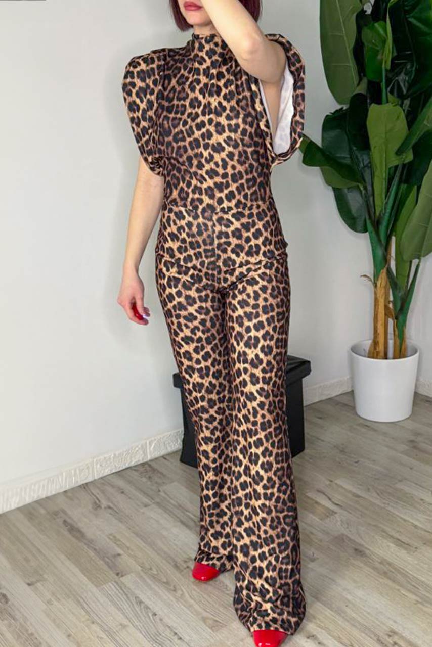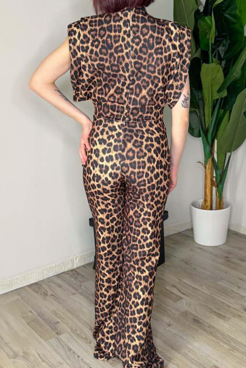 Ολόσωμη φόρμα animal print με βάτες και ζιβάγκο για στιλάτες εμφανίσεις.