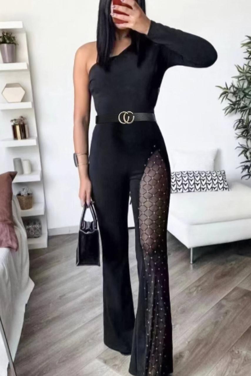 Σέξι ολόσωμη φόρμα με ένα μανίκι, ζωνάκι στην μέση και μεγάλη διαφάνεια. Ένα σέξι κομμάτι που θα τραβήξει τα βλέμματα.