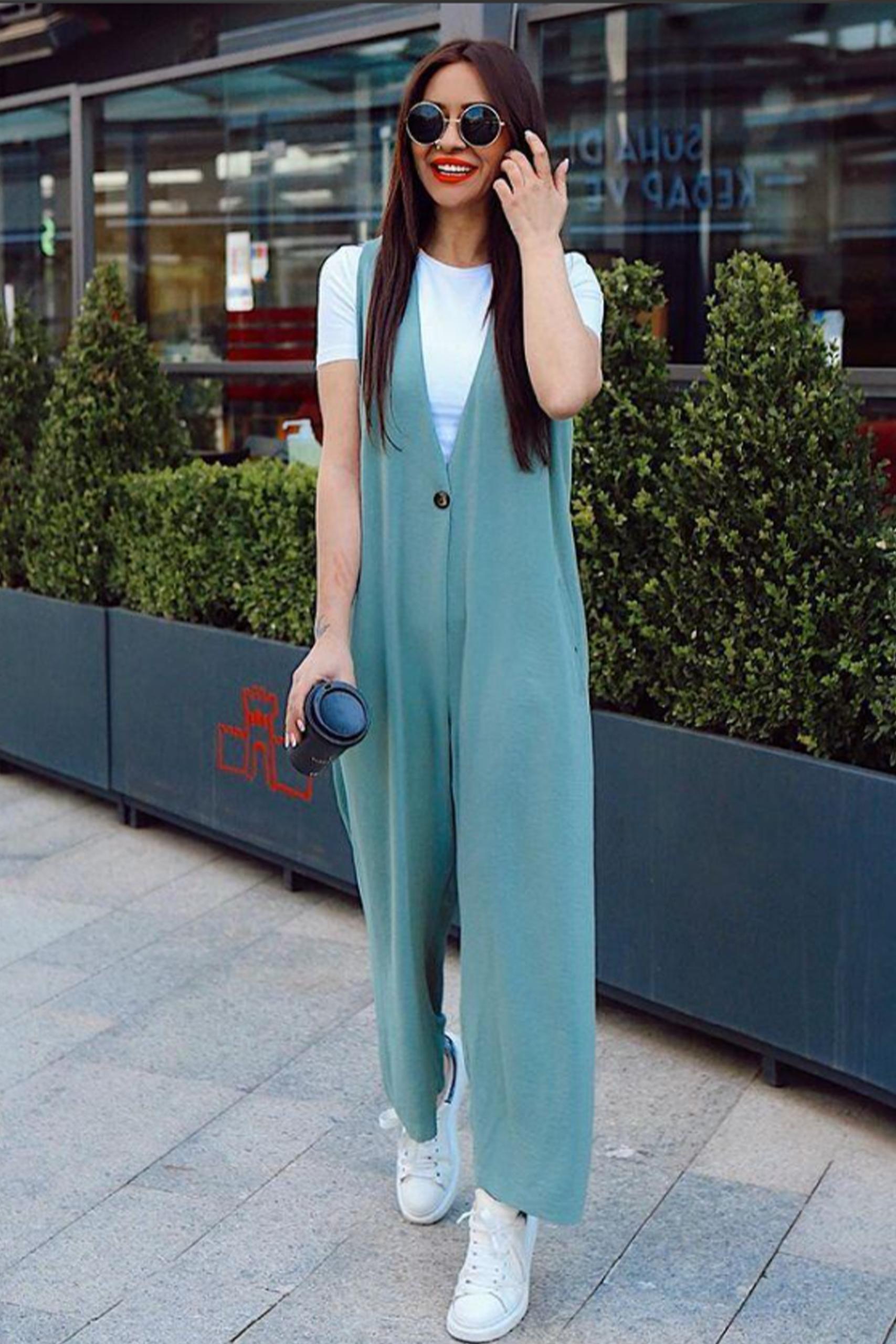 Oversized σαλοπέτα deep V neck με κουμπί, σετ με λευκό κοντομάνικο τοπ.