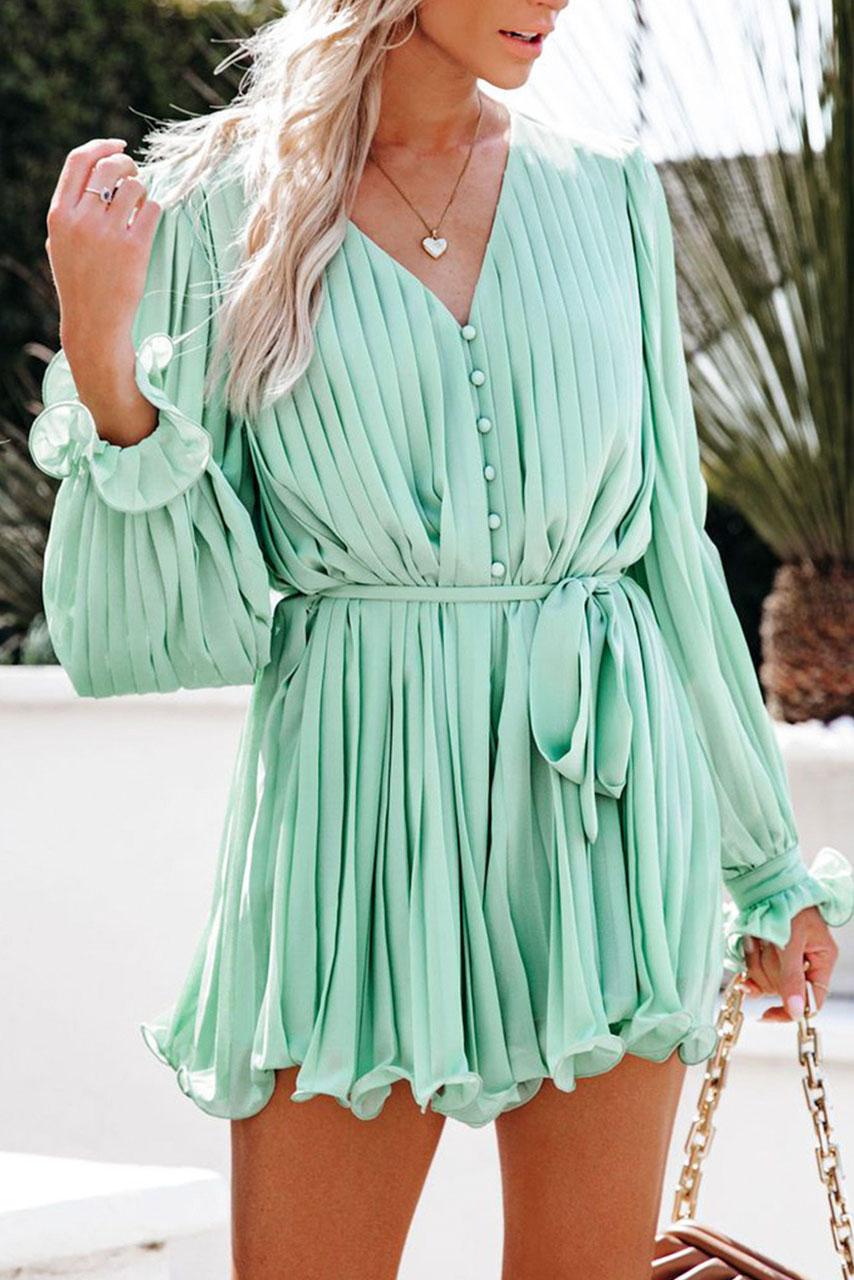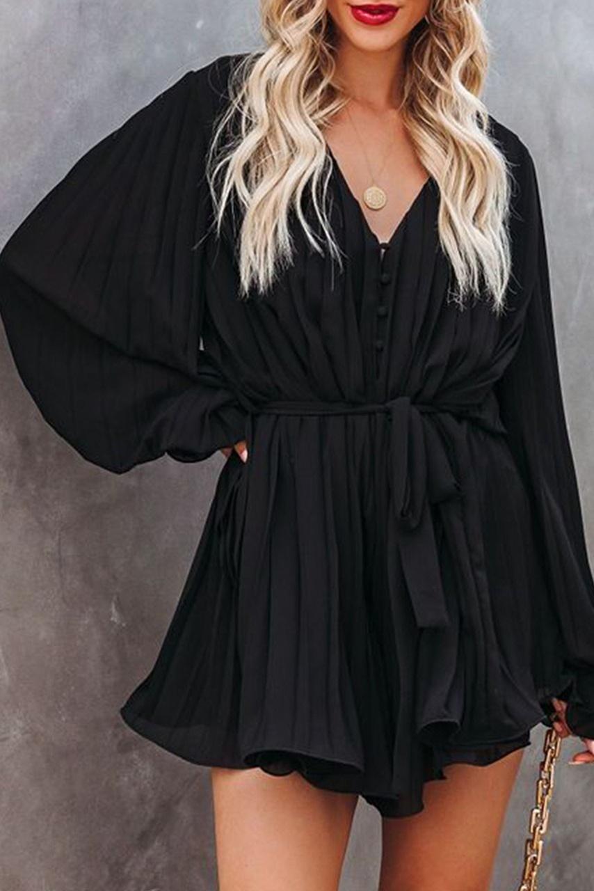Glam casual pleated playsuit ολόσωμη πλισέ μίνι φόρμα με ημιδιάφανα μανίκια σε φωτεινές αποχρώσεις και σε κλασσικό μαύρο χρώμα.