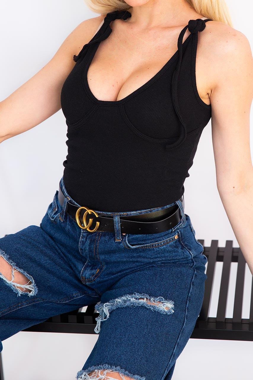 • Αμάνικο V neck κορμάκι | Bαθύ ντεκολτέ | Χωρίς ενίσχυση | Κανονική πλάτη | Δετές τιράντες | Brazil ψηλόμεσο σλιπ