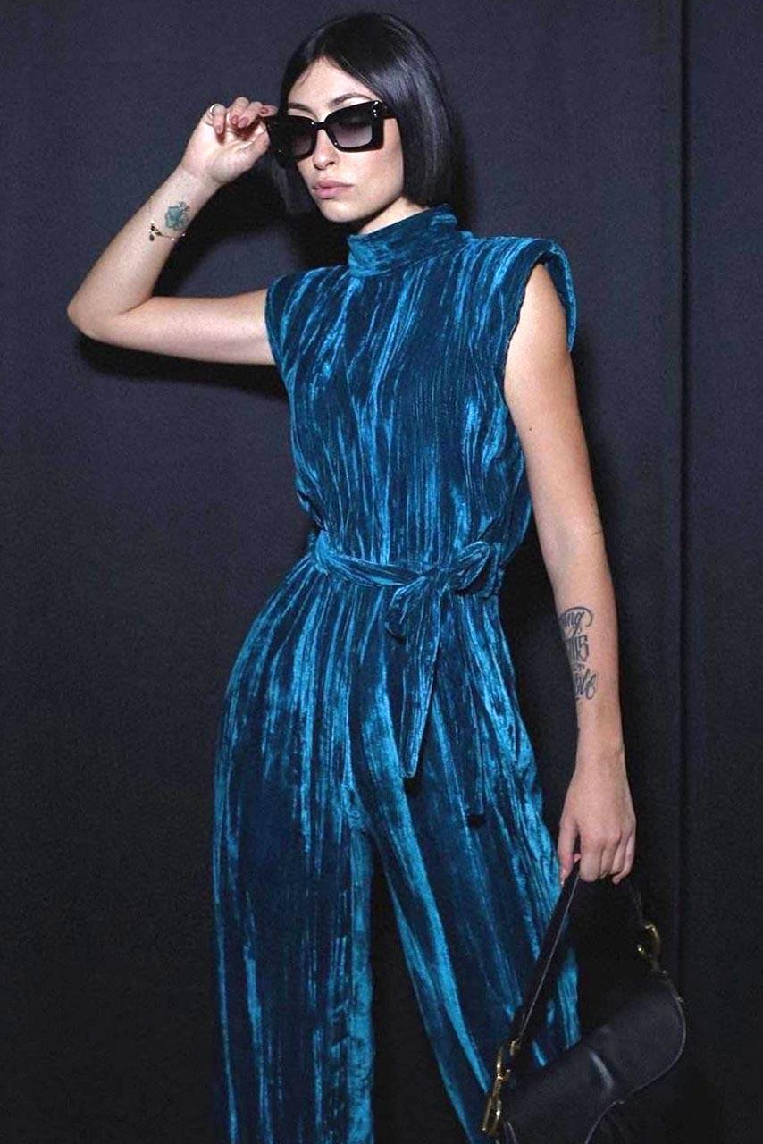 Velvet pleated jumpsuit μπλε Velvet pleated jumpsuit μπλε