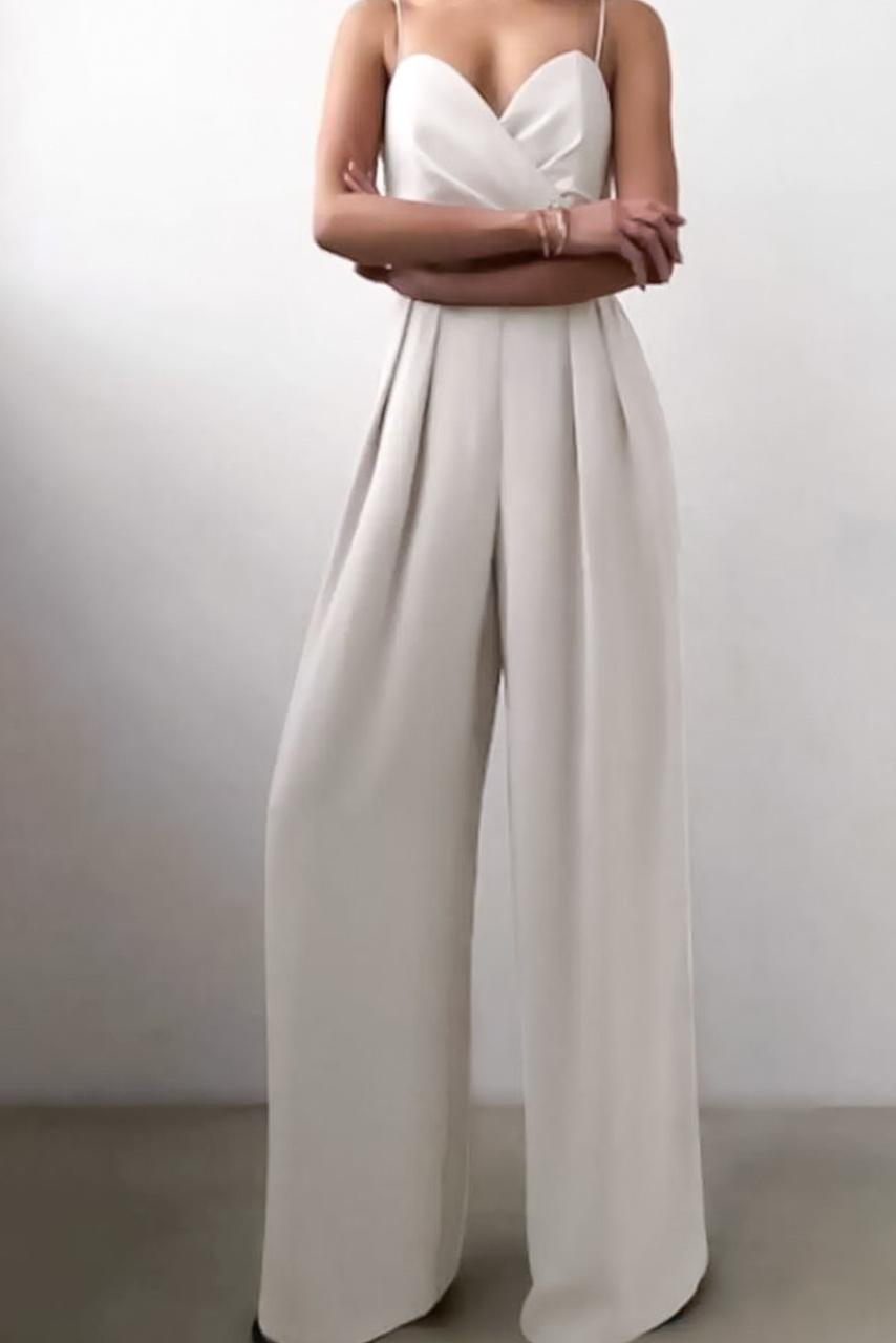 Ολόσωμη φόρμα καμπάνα με spaghetti strap τιράντες σε λευκή απόχρωση. Iδανικό για βαφτίσεις και για καλοκαιρινούς γάμους.