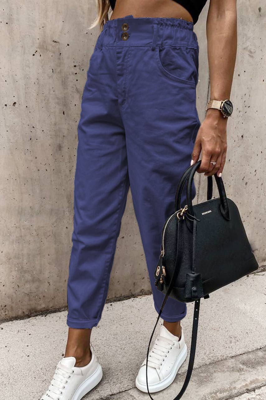 • Ankle cut παντελόνι | Λάστιχο στη μέση | Τσέπες | Φερμουάρ και κουμπί