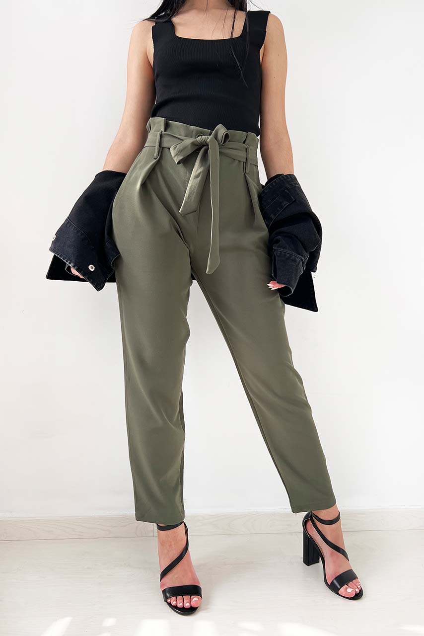 • Ankle cut παντελόνι | Λάστιχο στη μέση | Ζώνη ίδιου υφάσματος