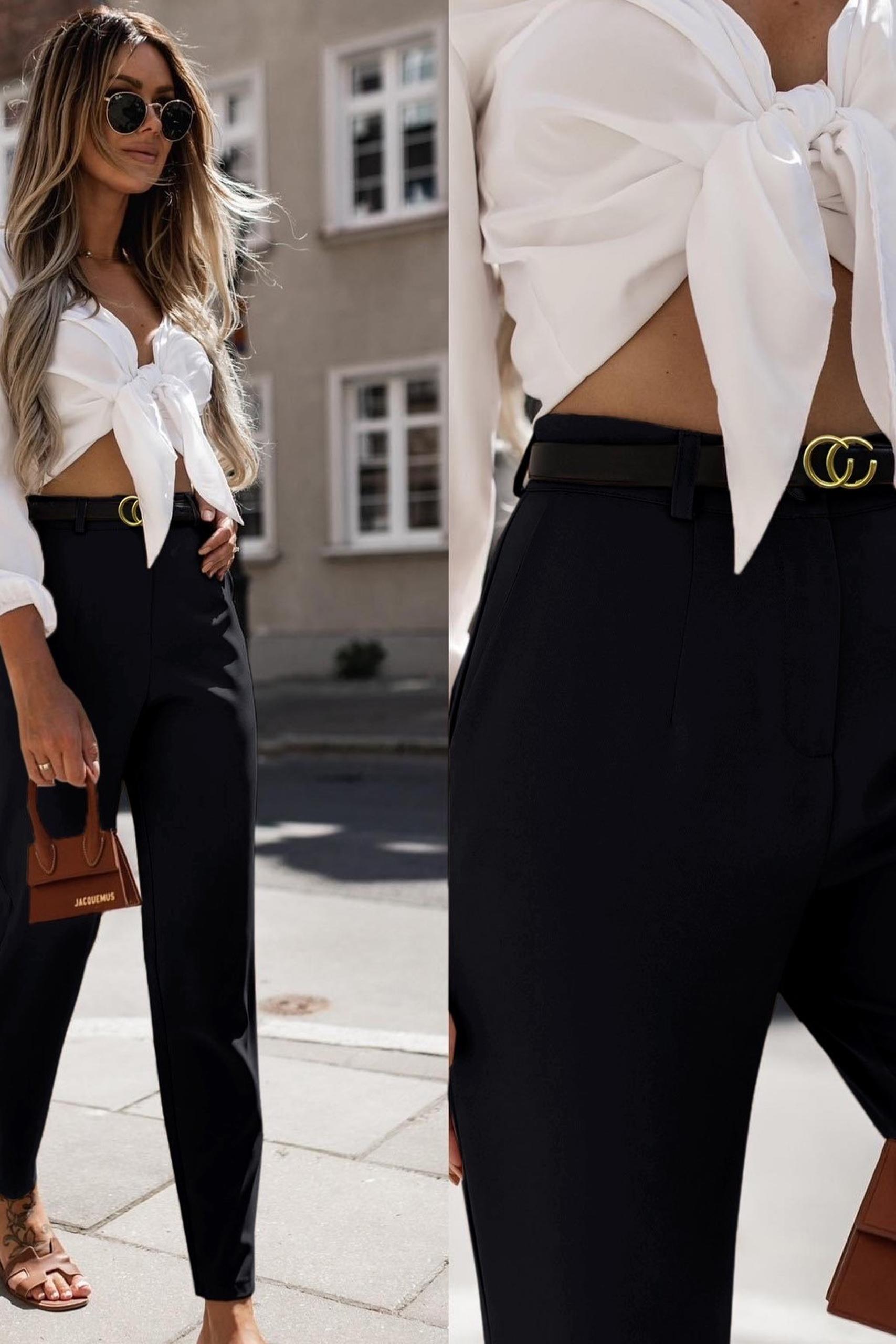 Cigarette ankle cut office look παντελόνι με ζωνάκι σε κάμελ και μαύρο χρώμα για διαφορετικούς συνδυασμούς όλη την ημέρα.