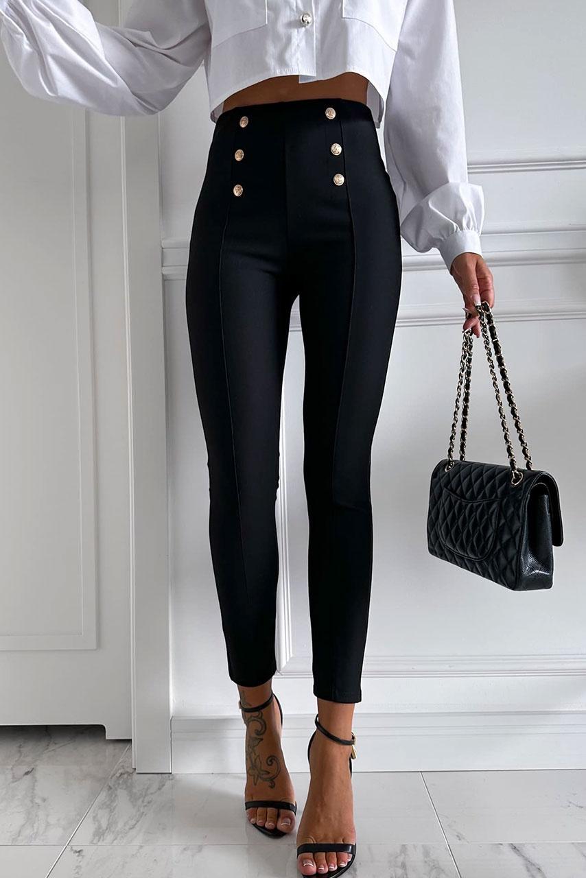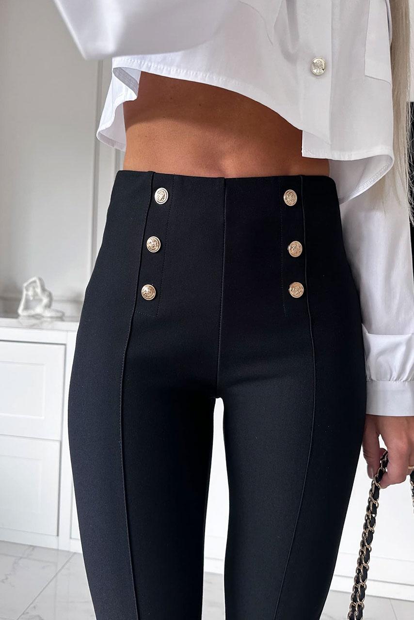 • Ελαστικό κολάν | Λάστιχο στη μέση | Ραφή μπροστά | Κουμπιά διακοσμητικά