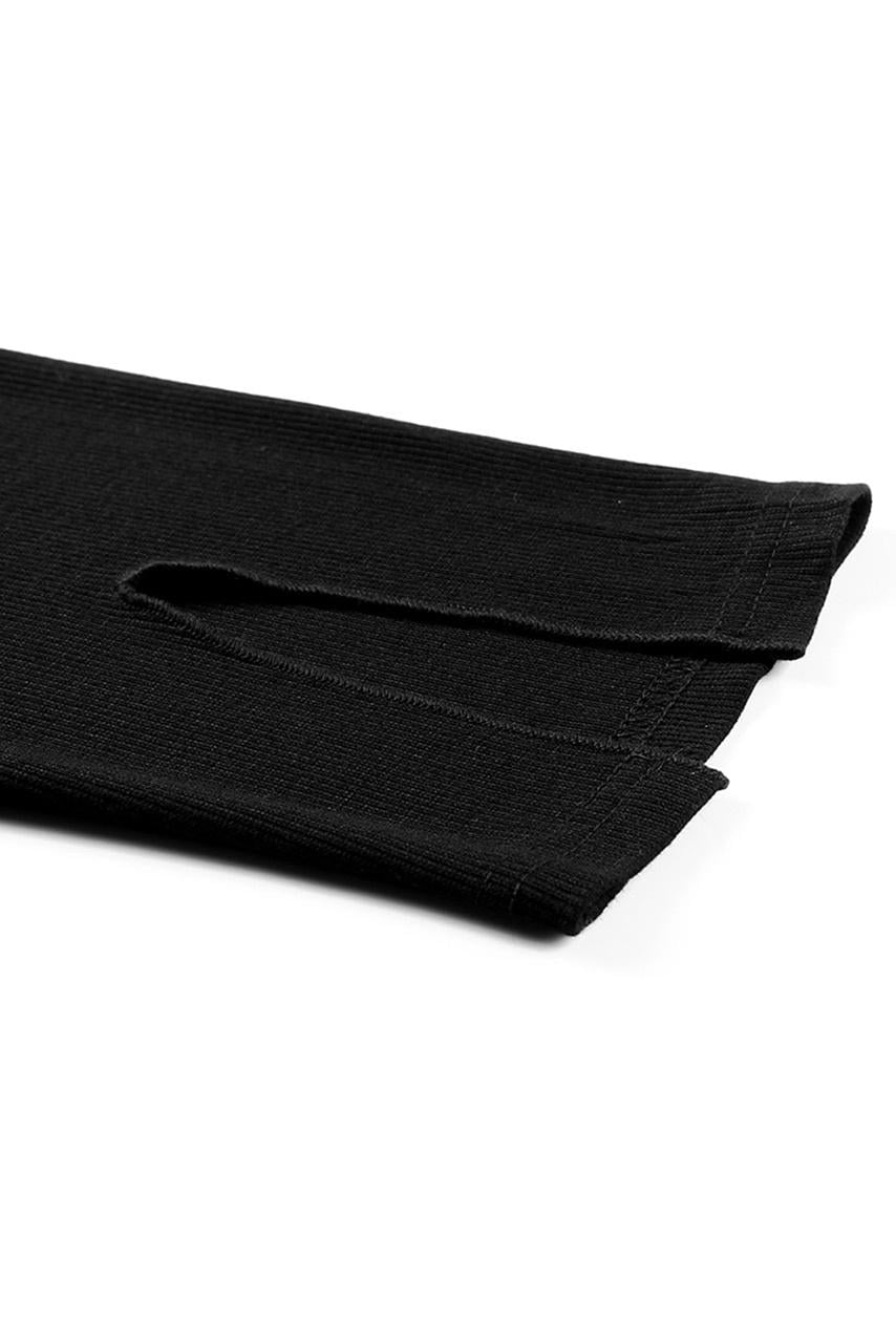 Casual glam front slit παντελόνι σε rib υφή και μαύρο χρώμα με άνοιγμα στο τελείωμα μπροστά.
