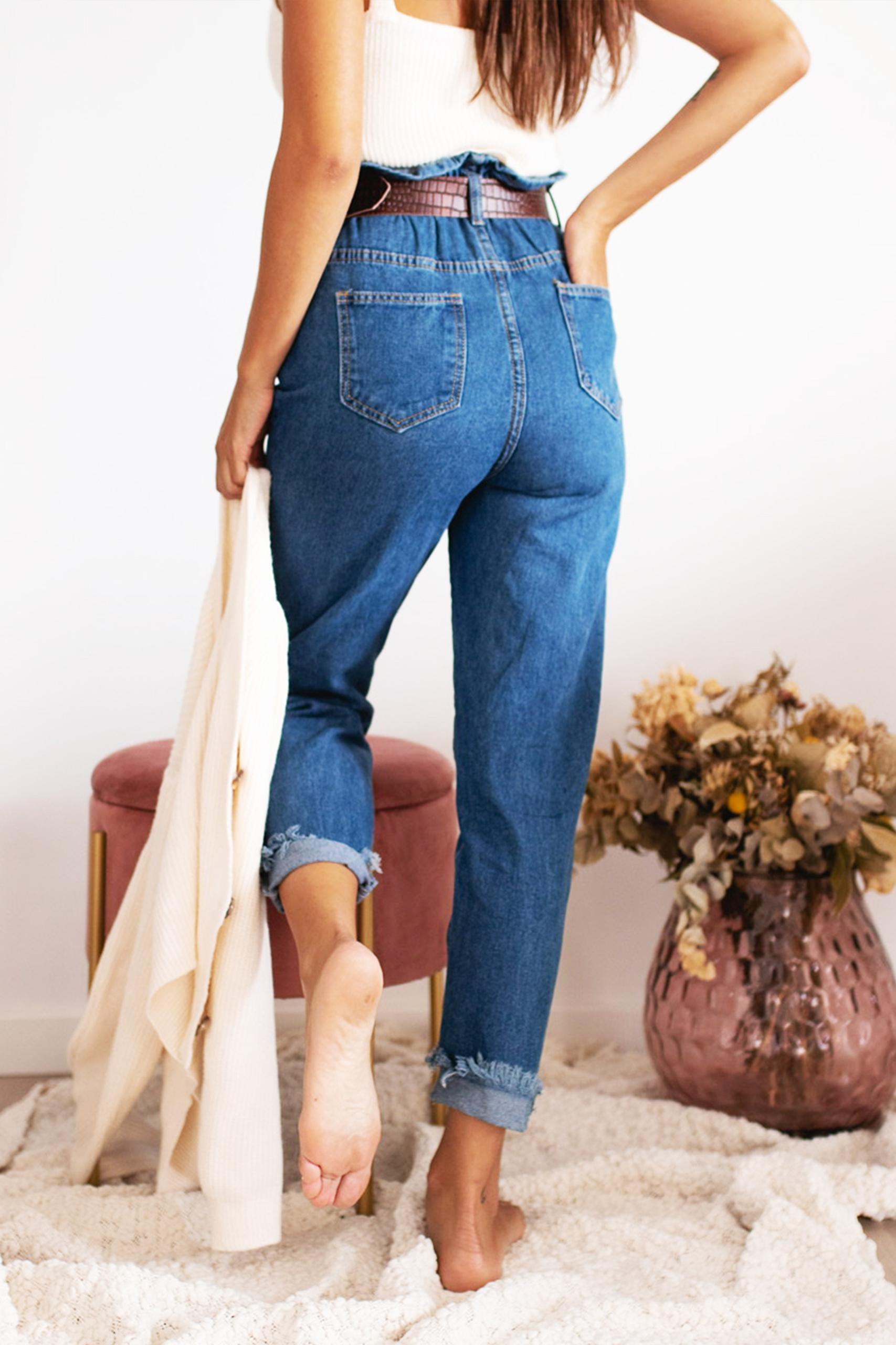 High waisted blue jean