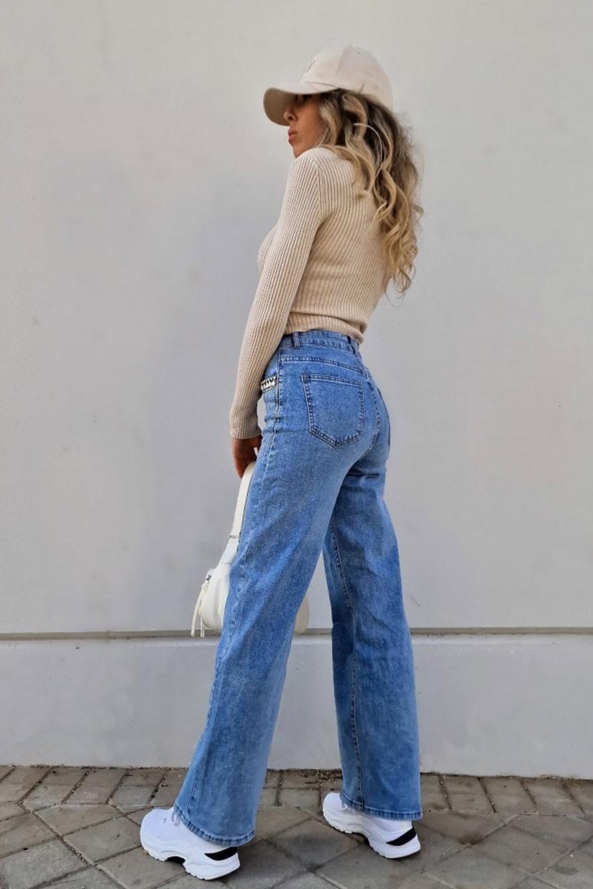 • Τζίν παντελόνι σε ίσια γραμμή | Στρας | Τσέπες