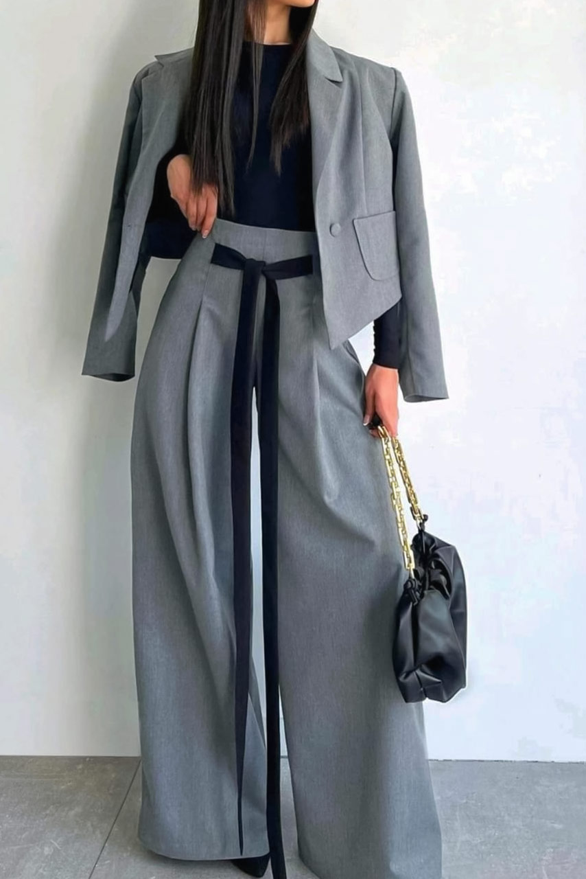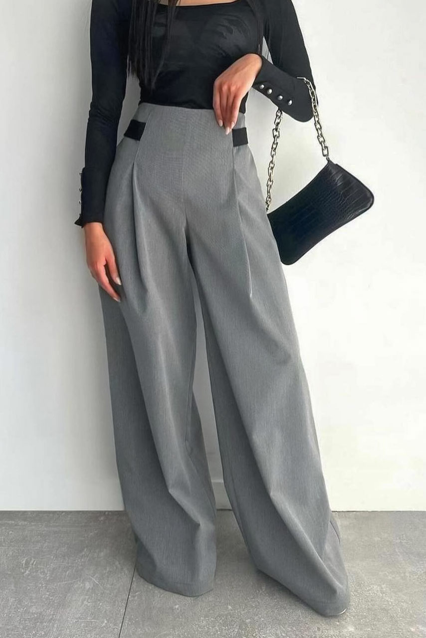 Παντελόνα wide leg με ρυθμιζόμενo ζωνάκι στην μέση.