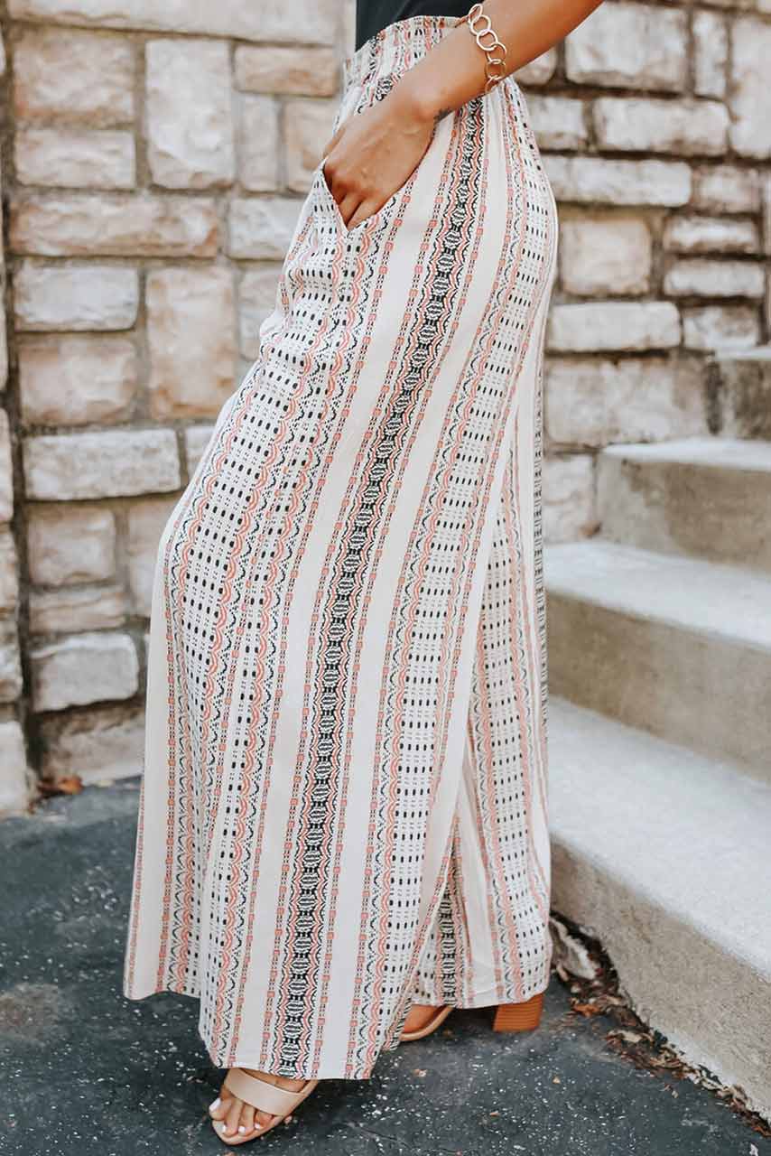 Νέα άνετη και αεράτη παντελόνα με print γεωμετρικά σχέδια. Έχει ελαστικό λάστιχο στην μέση και τσέπες. Είναι σε άνετη γραμμή και βγαίνει από small μέχρι XL νουμεράκι.