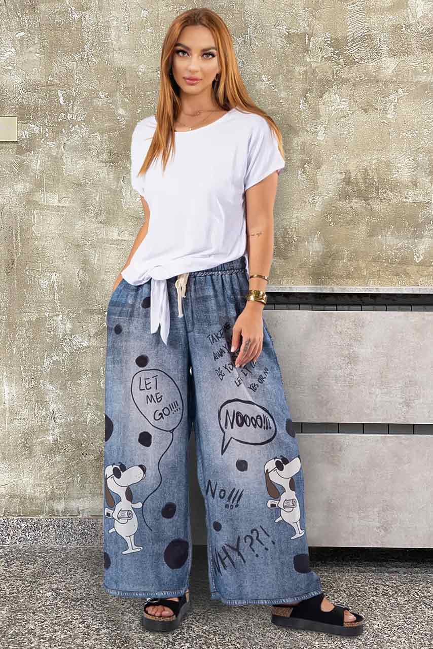 Παντελόνα με trendy prints και λάστιχο στην μέση για μεγαλύτερη ελαστικότητα. Έχει onesize νουμεράκι, που καλύπτει από S μέχρι L.