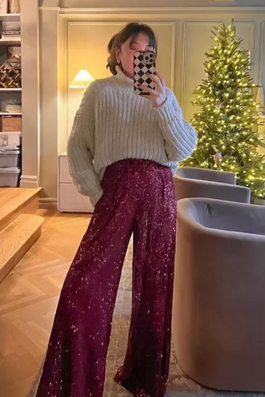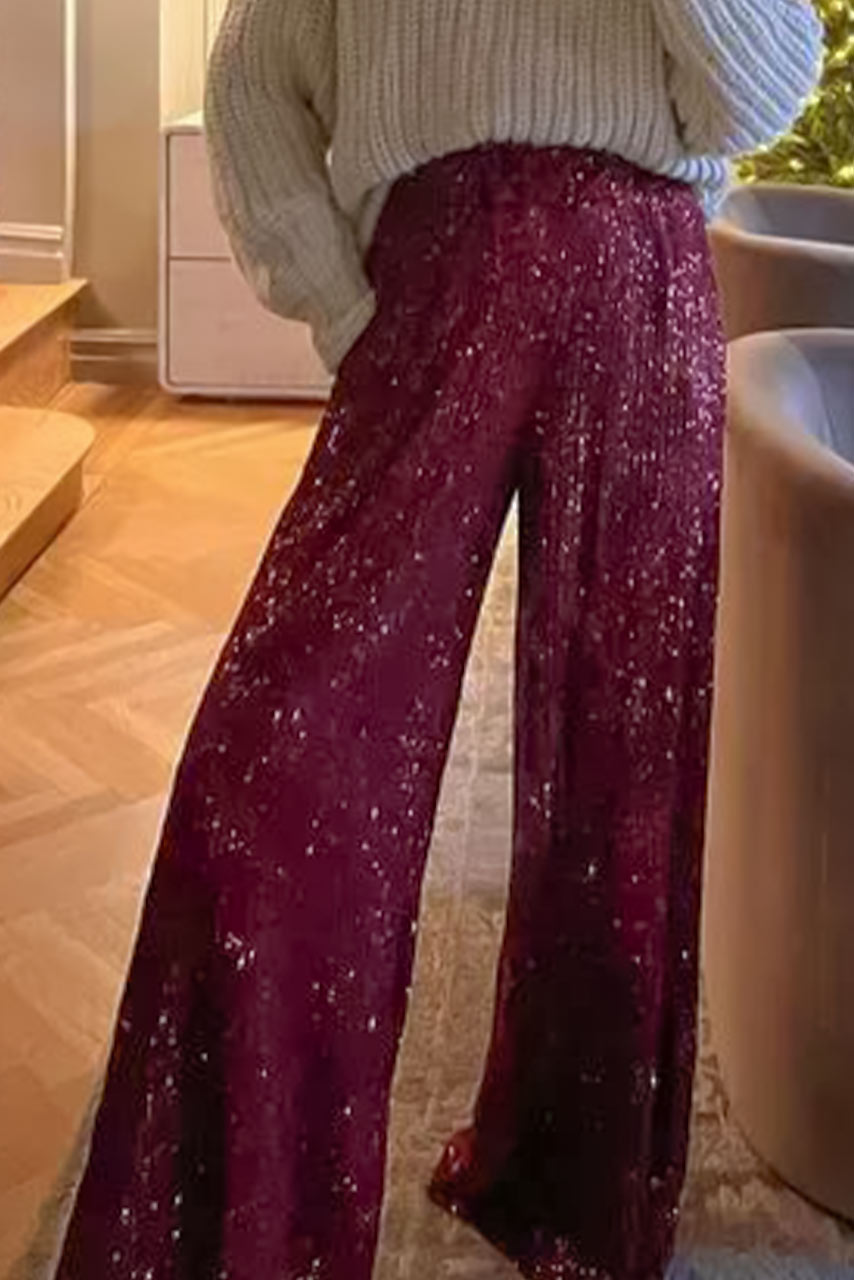 Glam rock casual flare παντελόνι με παγιέτες σε μπορντό all time classic απόχρωση.
