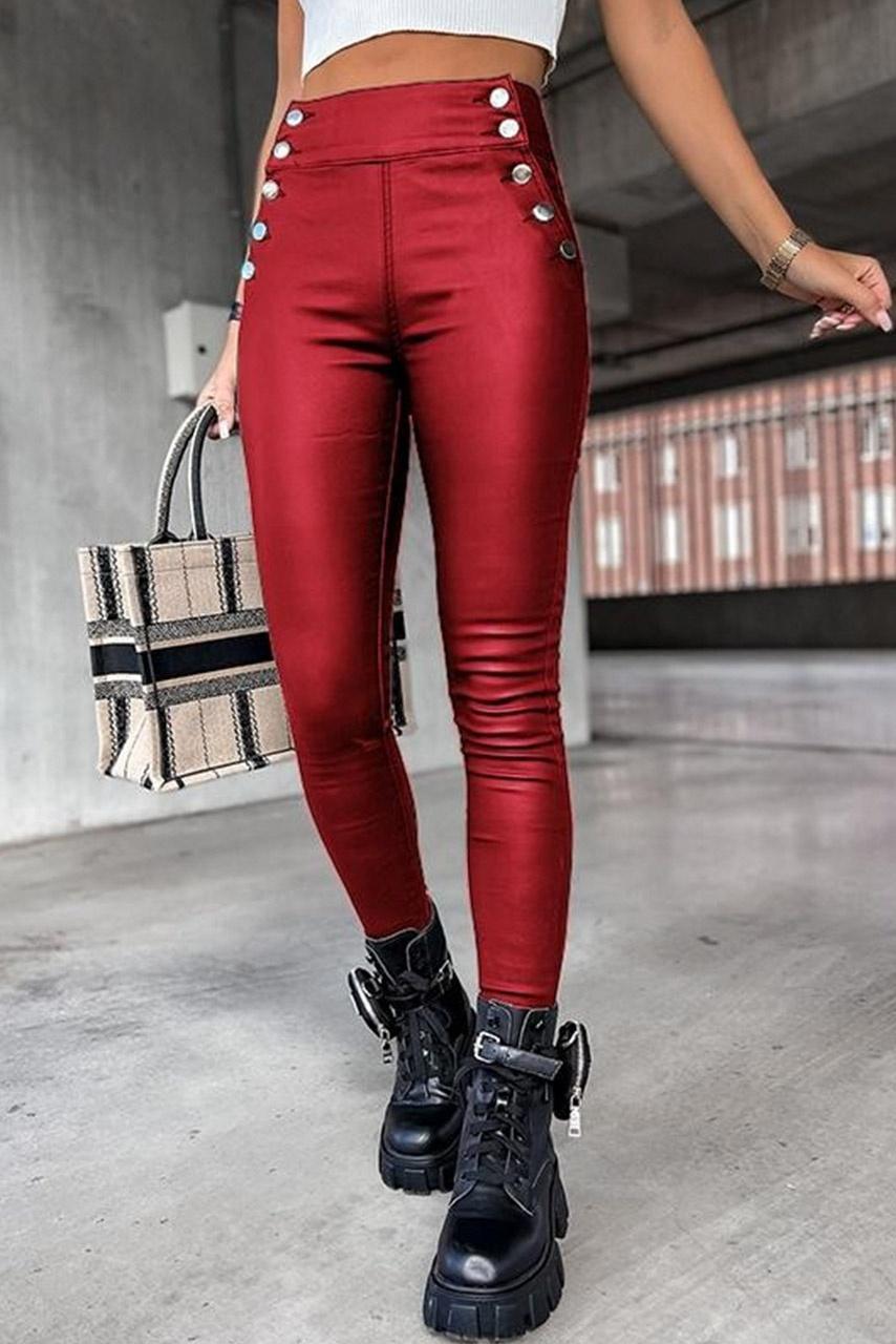 Side buttons κολάν eco leather σε κόκκινο χρώμα με λεπτομέρεια ασημί κουμπιά στο πλάι.