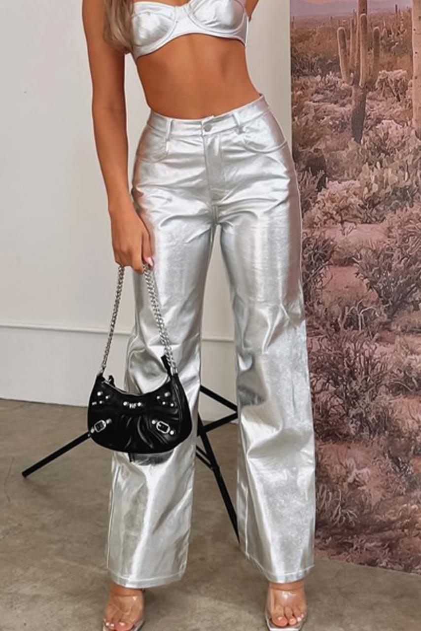 Δερμάτινο ασημί παντελόνι