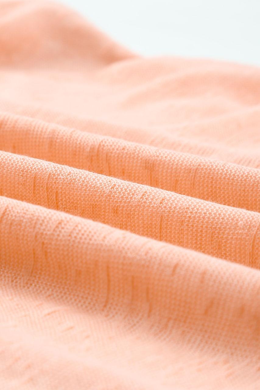 Ένα λεπτό t-shirt beachwear cover up σε απαλό ροζ χρώμα με κοντά μανίκια και άνετη εφαρμογή, ιδανικό για την παραλία.