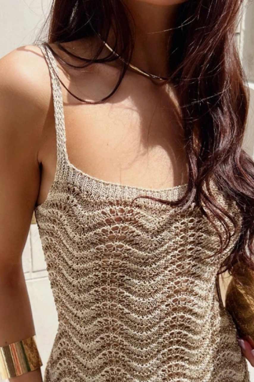 Αναδείξτε το καλοκαιρινό σας στυλ με αυτό το πλεκτό beachwear φόρεμα midi, ιδανικό για κομψές και αέρινες εμφανίσεις! Το boho crochet ύφασμα αγκαλιάζει τη σιλουέτα, ενώ η ανοιχτή πλάτη με ρυθμιζόμενο δέσιμο προσθέτει μία sexy πινελιά.