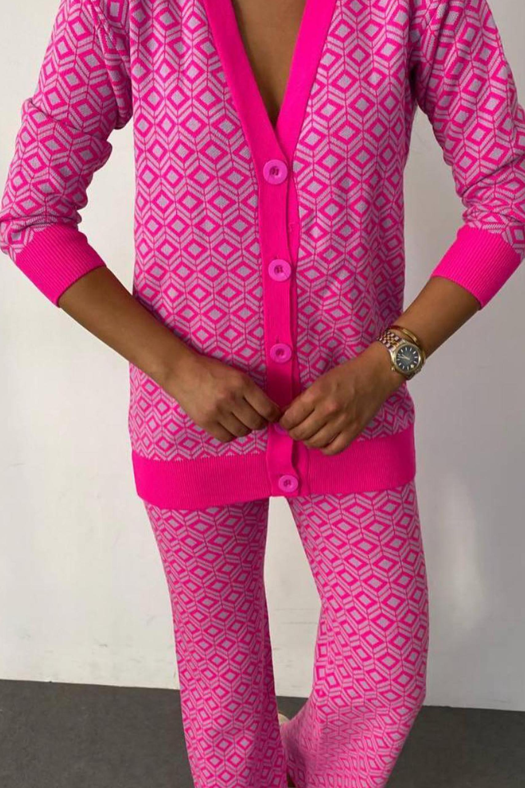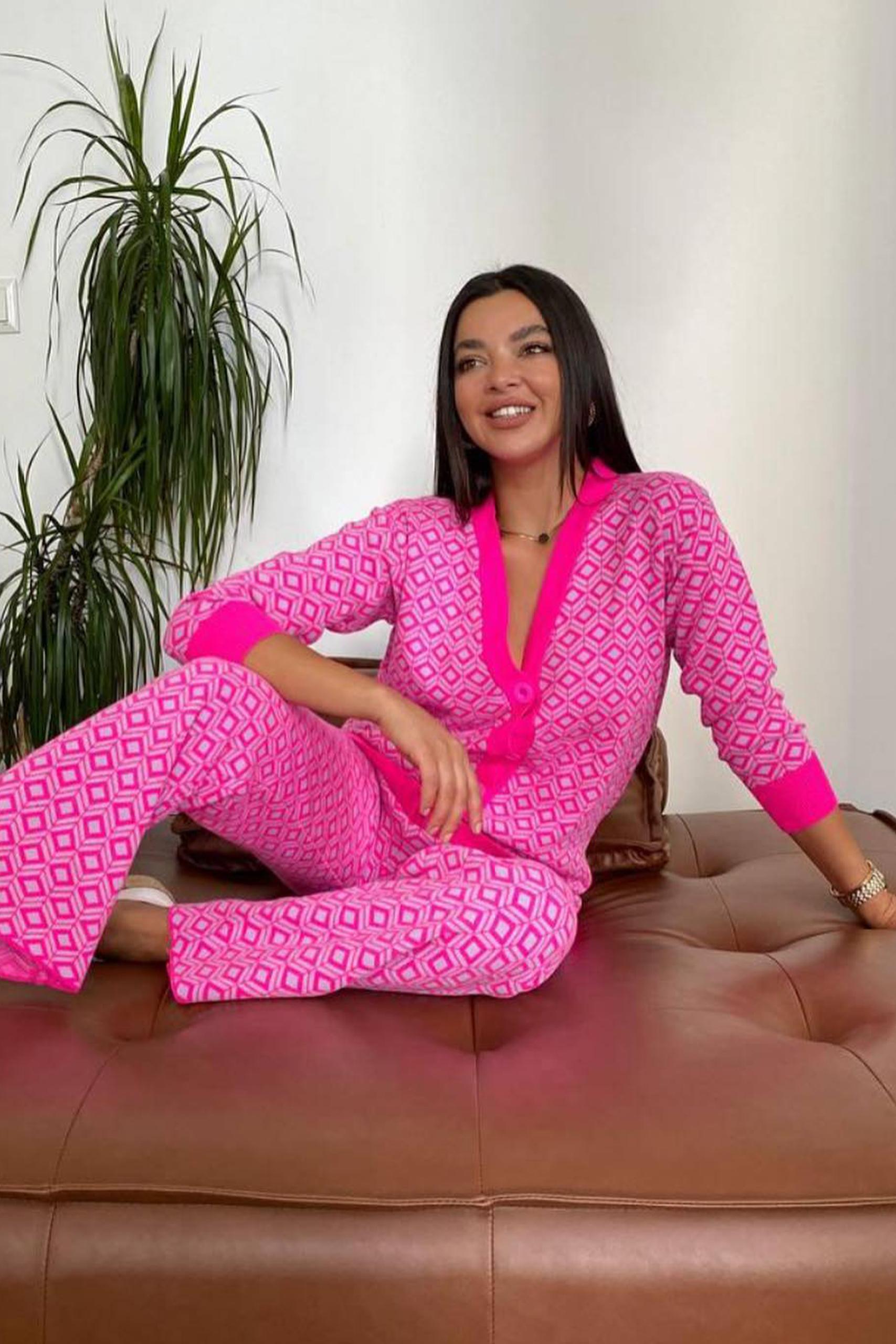 Pink retro style all day σετ με allover 60s pattern σε φούξια αποχρώσεις με μεγάλα γεωμετρικά σχέδια.
