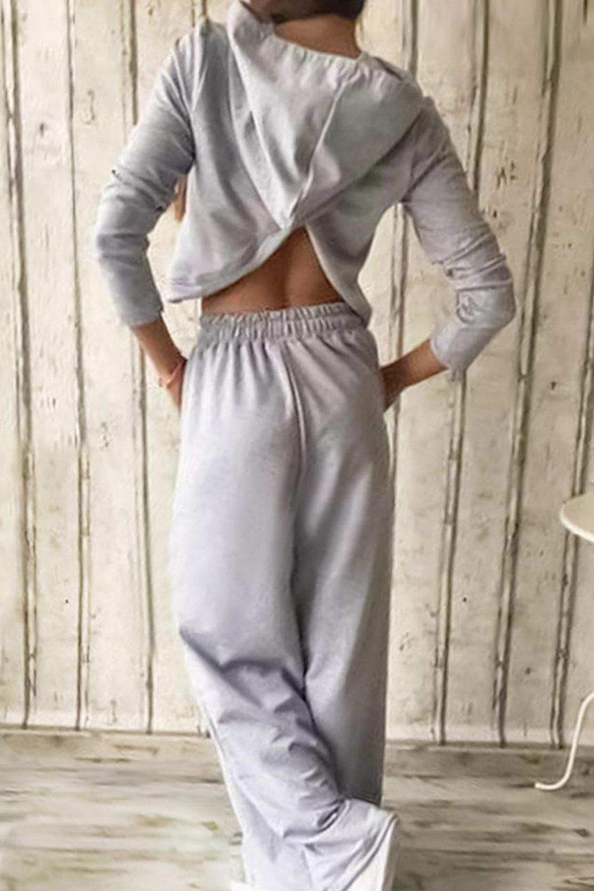 All day casual μπλούζα σε γκρι απόχρωση με μακρύ μανίκι με χαμηλό άνοιγμα στην πλάτη και κουκούλα.