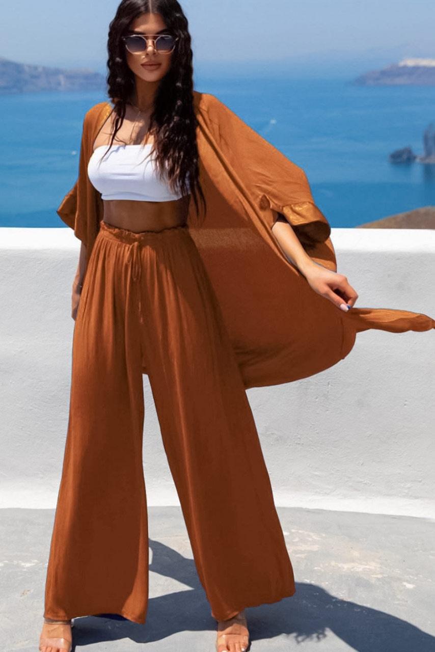 All day loose σετ με φαρδιά παντελόνα και ανοιχτή πουκαμίσα.