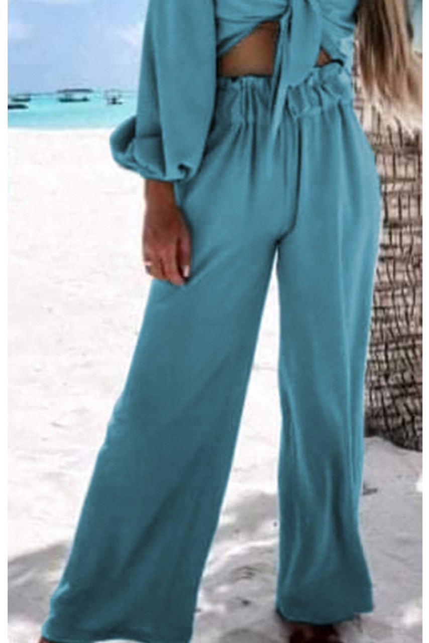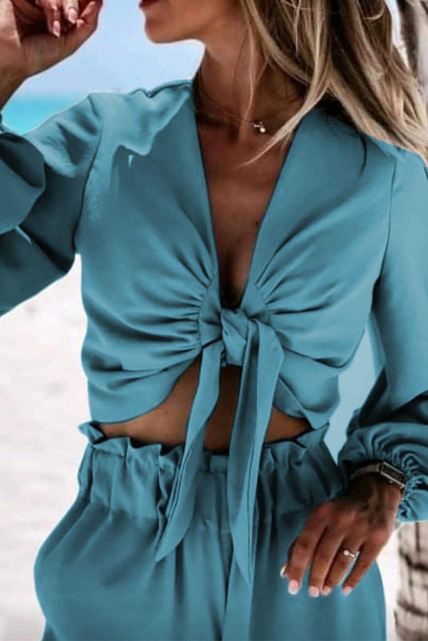 Casual all day set με δέσιμο μπροστά on top σε καλοκαιρινή απόχρωση του γαλάζιου.