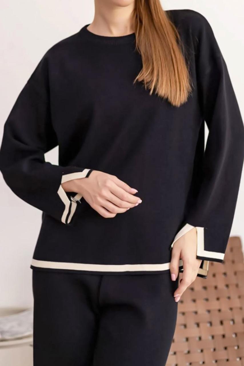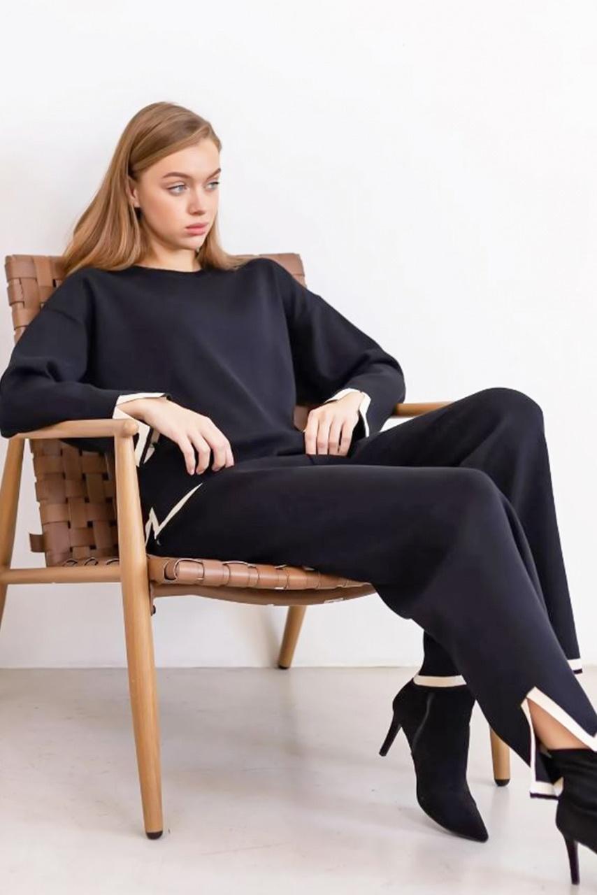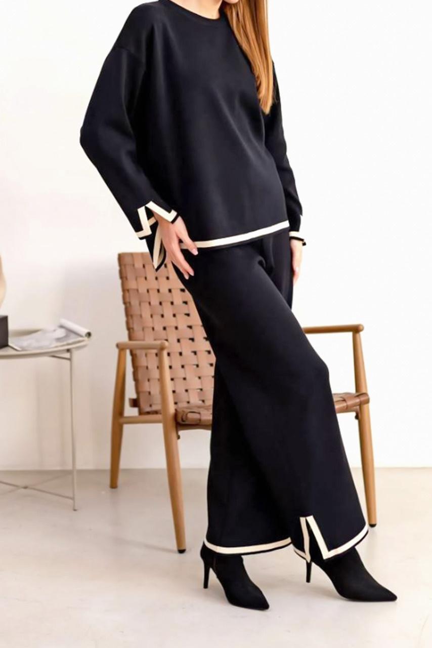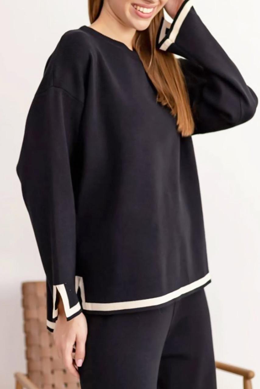 Casual all day μάλλινο σετ παντελόνι και μπλούζα σε μαύρη απόχρωση για όλες τις ώρες της ημέρας.