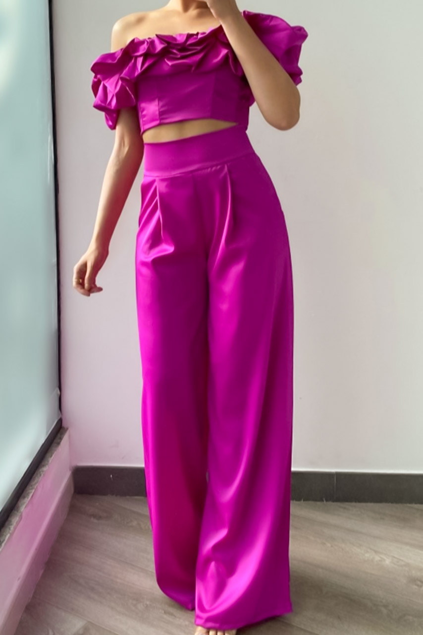 Σατέν σετάκι με λεπτομέρειες βολάν σε ματζέντα