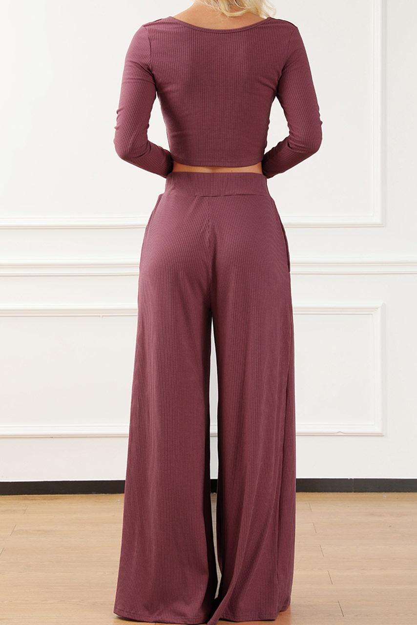 Σετ rib crop τοπ με παντελόνα Σετ rib crop τοπ με παντελόνα