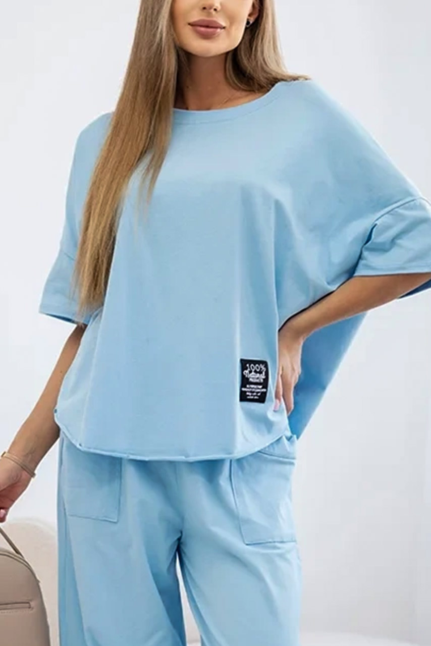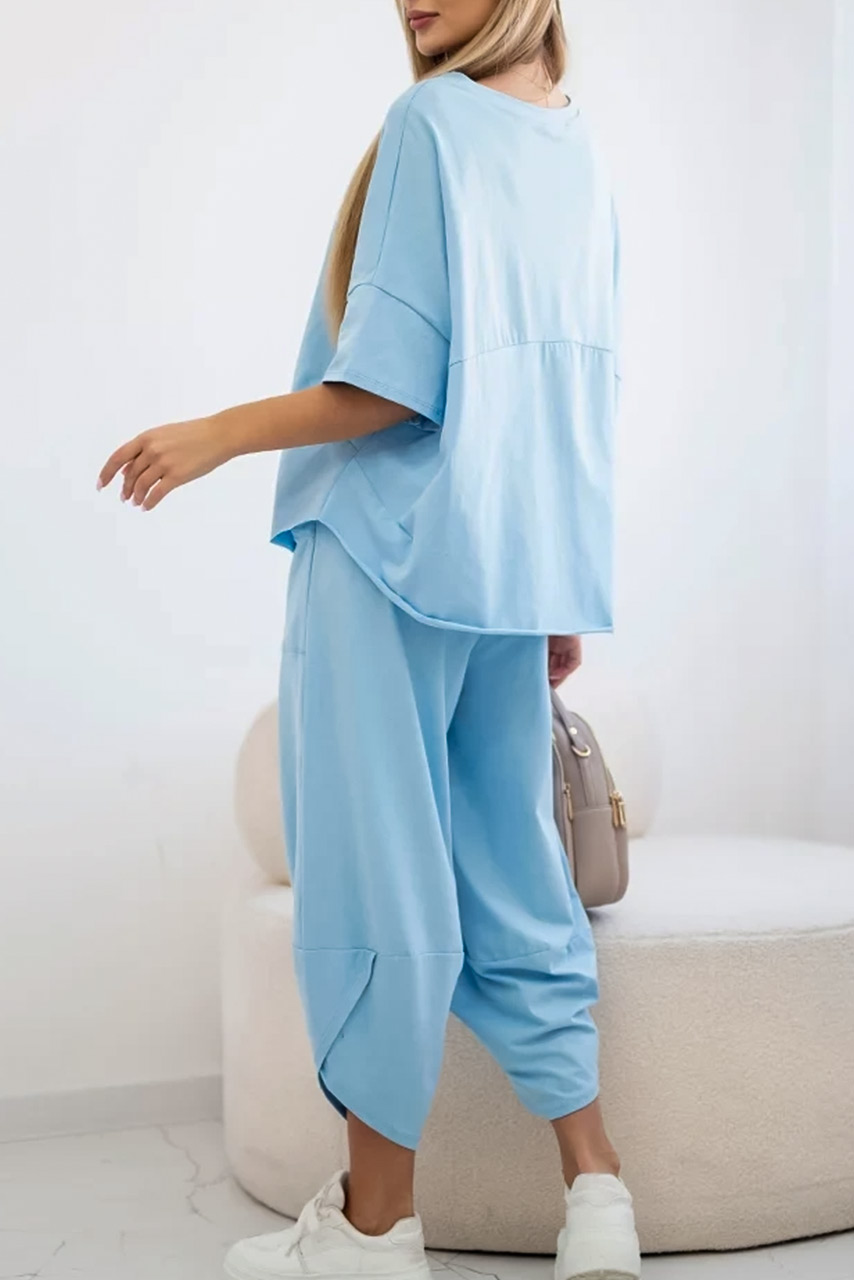 Σετάκι γαλάζιο με oversized μπλούζα και cropped παντελόνι Σετάκι γαλάζιο με oversized μπλούζα και cropped παντελόνι