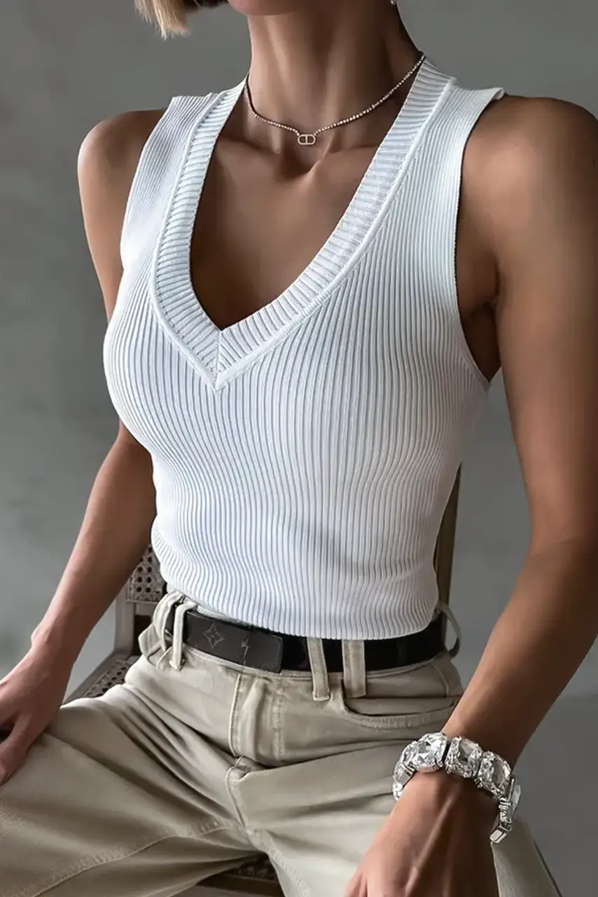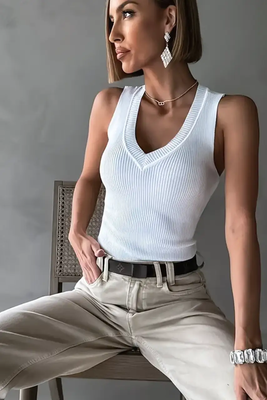 Απόλυτα διαχρονικό και αισθησιακό, αυτό το λευκό rib κορμάκι είναι το βασικό κομμάτι που δεν πρέπει να λείπει από καμία ντουλάπα. Το ελαστικό ριμπ ύφασμα αγκαλιάζει τη σιλουέτα, προσφέροντας τέλεια εφαρμογή, ενώ το βαθύ V ντεκολτέ προσθέτει μια sexy και κομψή πινελιά. Φοριέται από το πρωί ως το βράδυ, είτε μέσα από blazer και παντελόνι για sleek εμφάνιση, είτε με τζιν ή φούστα για πιο casual glam vibes.