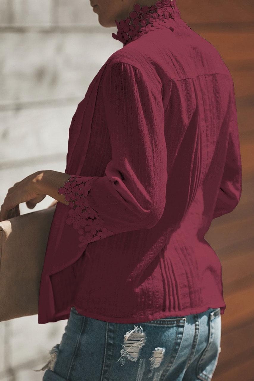 Romantic boho πουκάμισο σε πέντε αποχρώσεις με λεπτομέρεια δαντέλα, μάο γιακά και κεντήματα μπροστά.