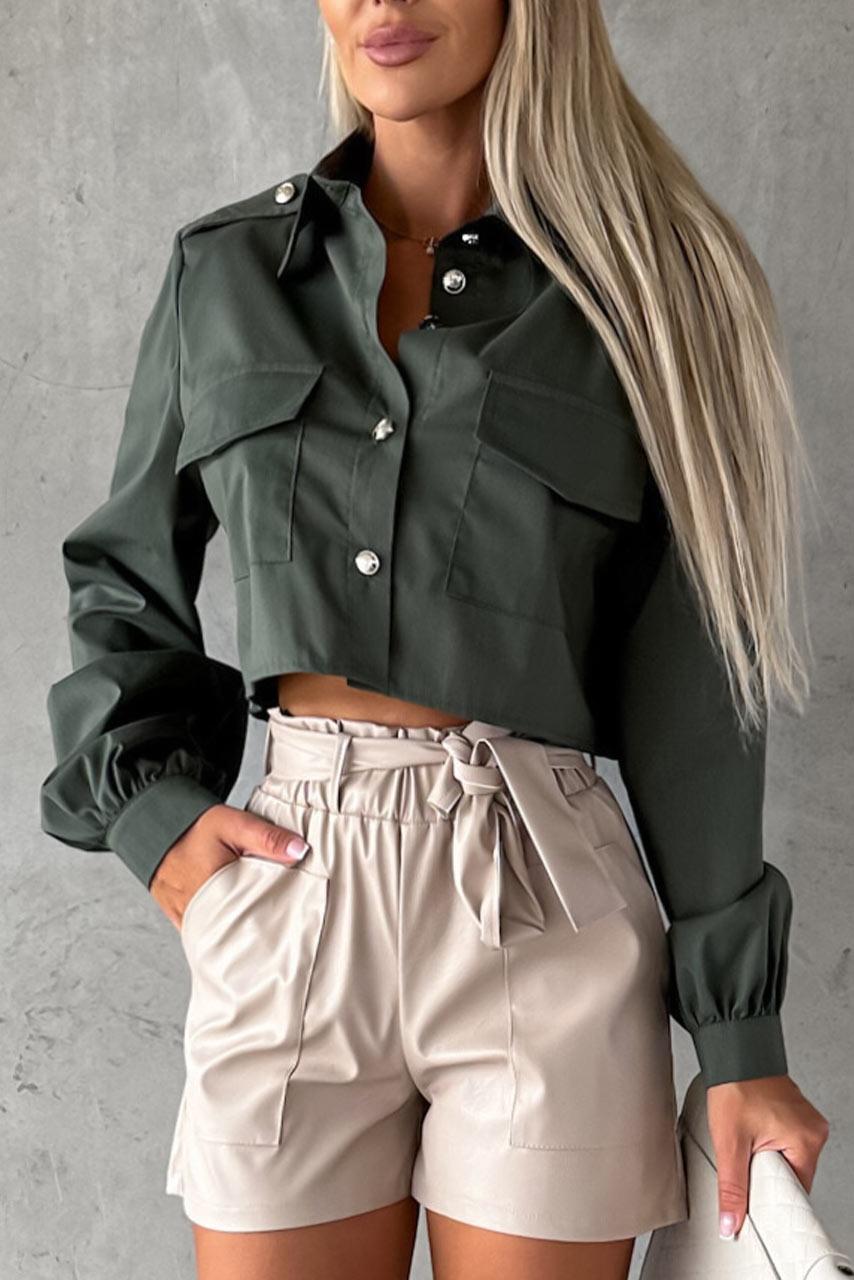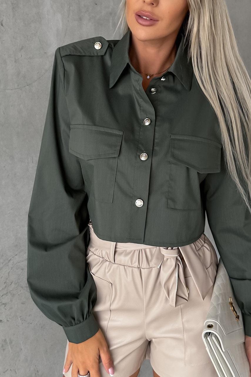 Μοντέρνο crop top πουκάμισο με τσέπες και κουμπιά κατά μήκος. Συνδυάζετε υπέροχα με όλα τα ρούχα.