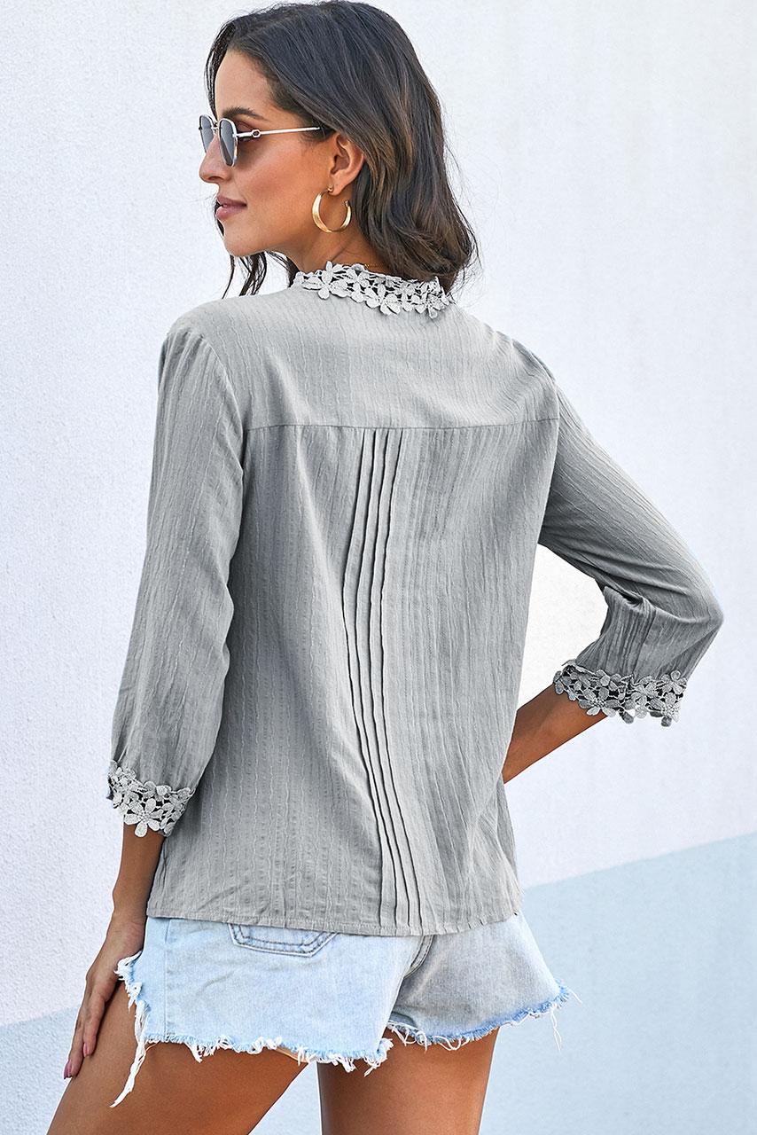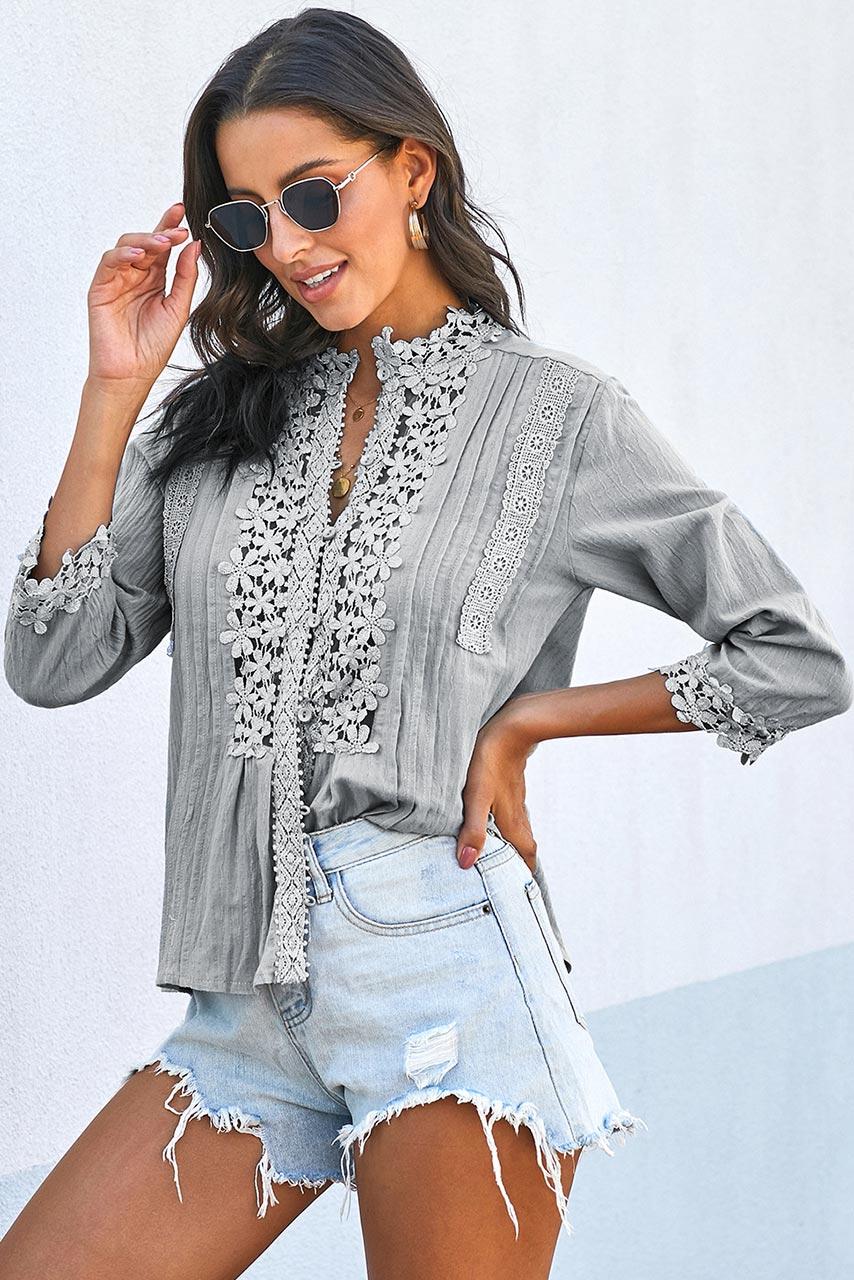 Romantic boho πουκάμισο σε πέντε αποχρώσεις με λεπτομέρεια δαντέλα, μάο γιακά και κεντήματα μπροστά.