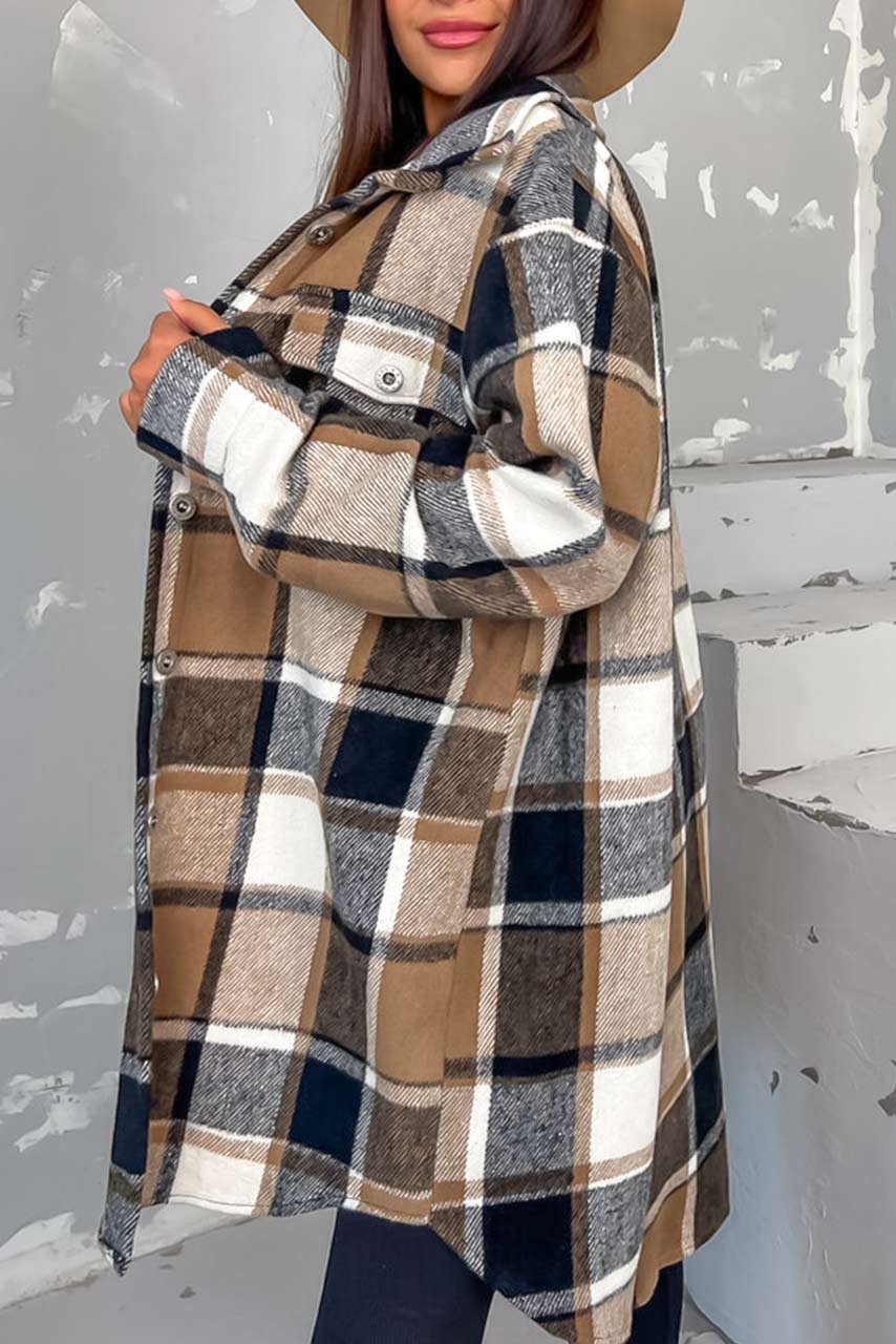 Longline καρώ πουκάμισο σε καφέ με μαύρο Longline καρώ πουκάμισο σε καφέ με μαύρο