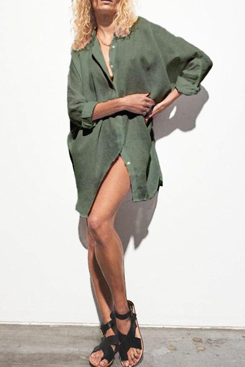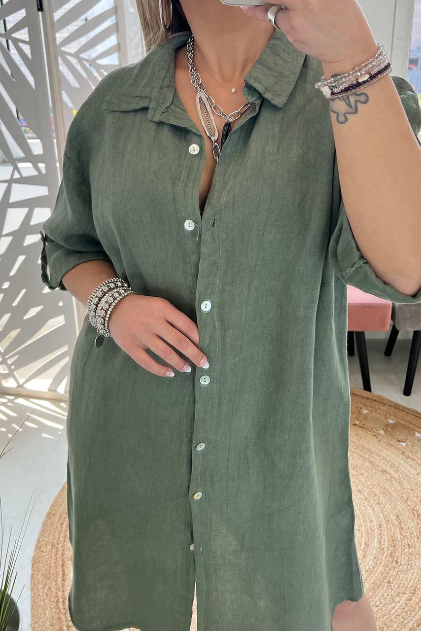 Longline beachwear style λινή πουκαμίσα σε ουδέτερη χακί απόχρωση.