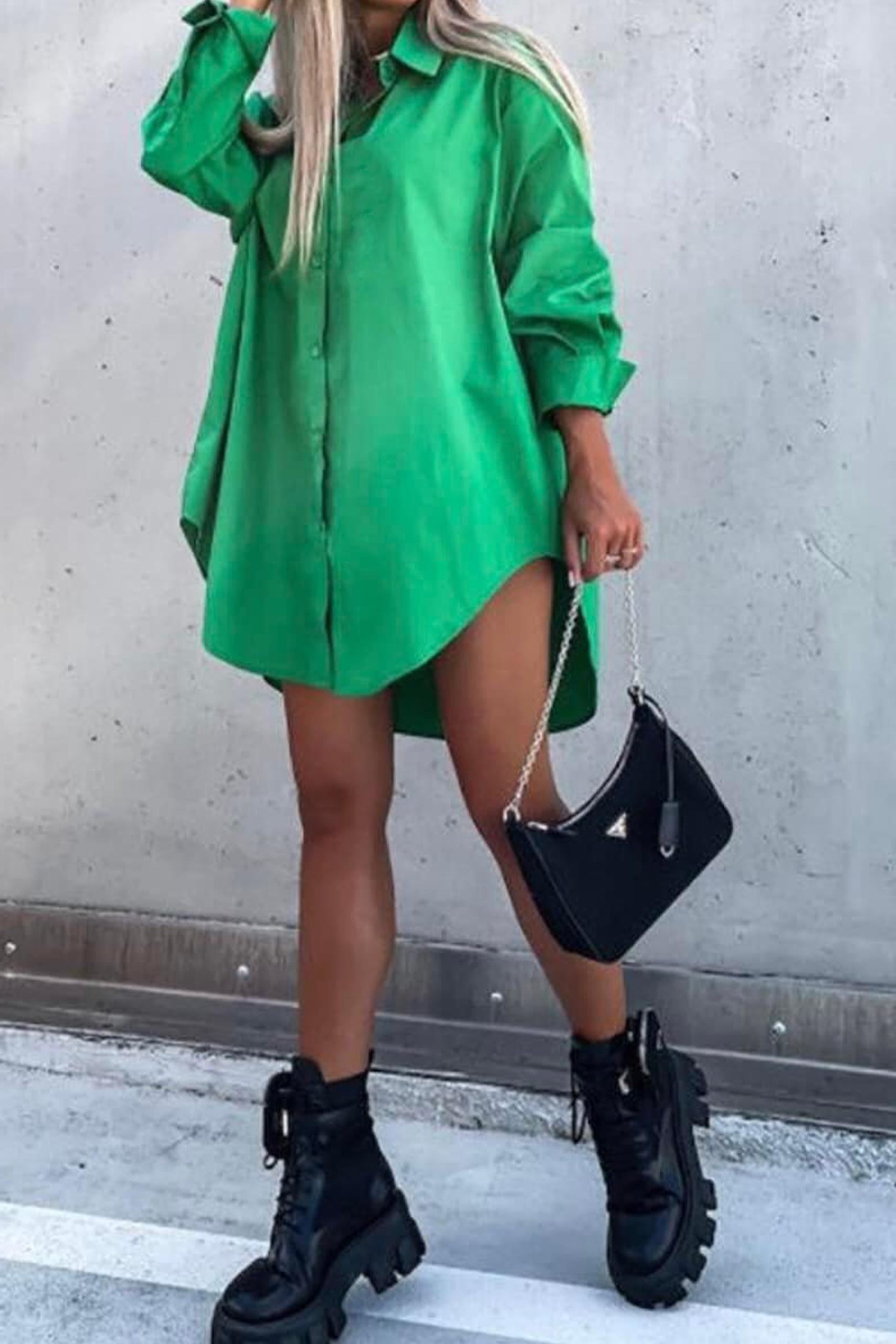 Classic n comfy loose style ασύμμετρο πουκάμισο σε πράσινο pop χρώμα. Φορέστε το όλες τις ώρες της ημέρας, συνδυάζοντας το με το Τζιν σορτς με τρουκς για casual all day outfits ή ακόμη και σκέτο με over the knee κάλτσες και το Zip up moto style jacket για πιο rock εμφανίσεις.