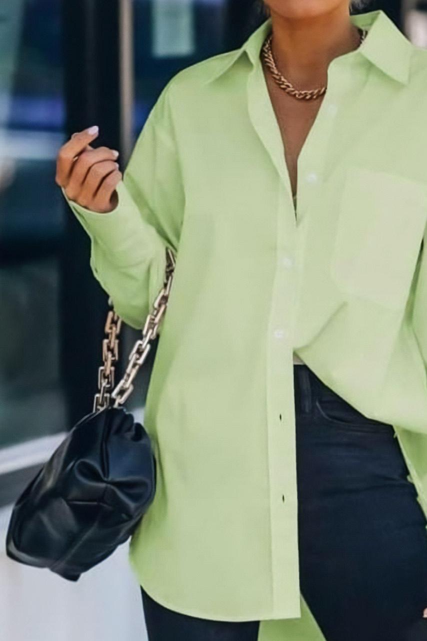 Πουκάμισο oversize με τσέπη λαχανί Πουκάμισο oversize με τσέπη λαχανί